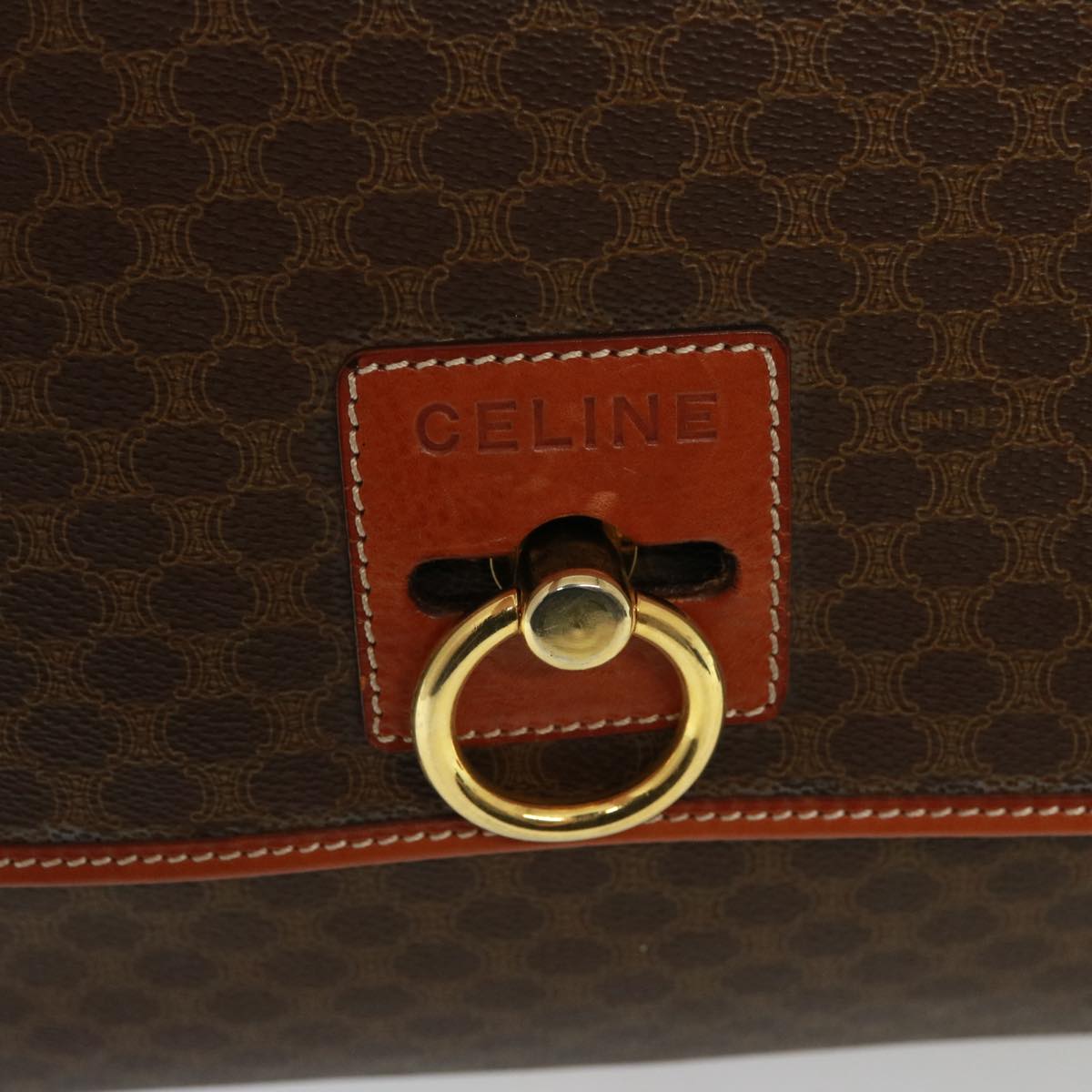 CELINE Macadam Canvas Boston Bag PVC 2way Brown Auth 73841