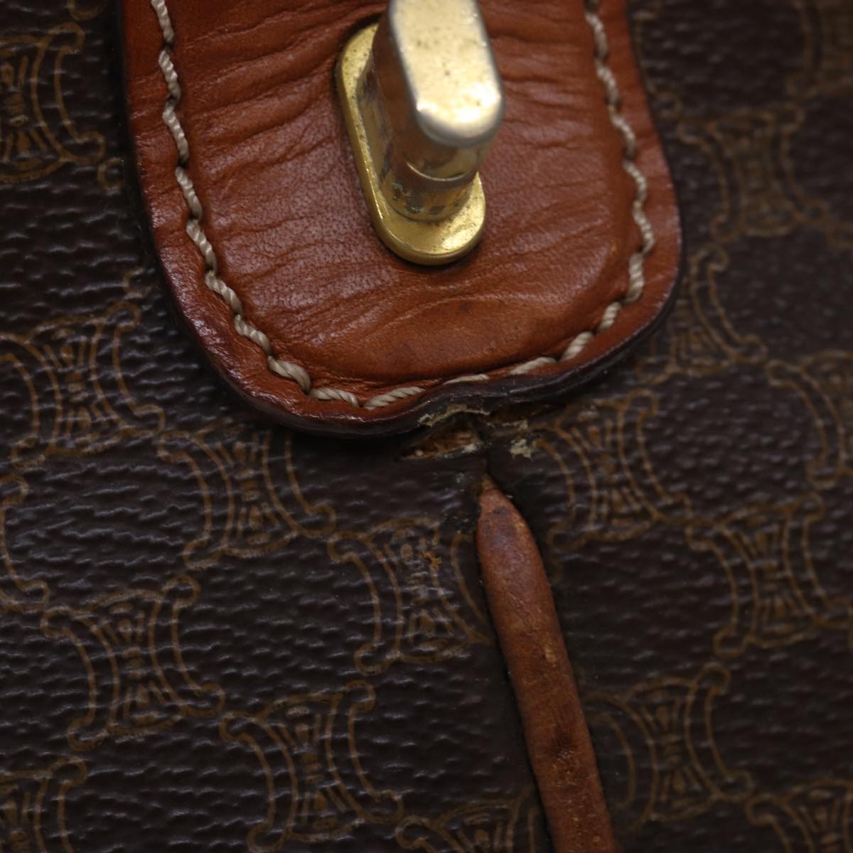 CELINE Macadam Canvas Boston Bag PVC Leather Brown Auth 79438