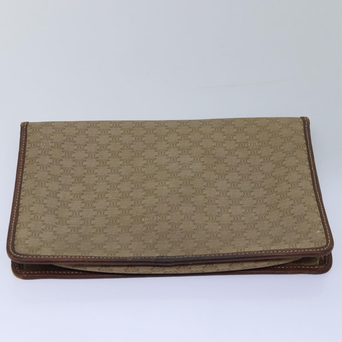 CELINE Macadam Canvas Clutch Bag 2Set Beige Red Auth bs14869