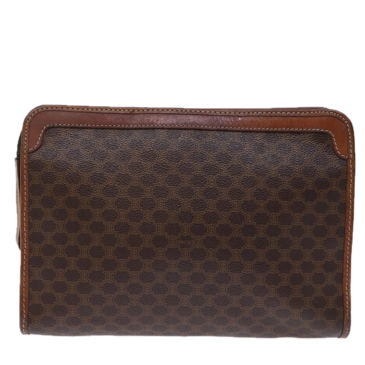 CELINE Macadam Canvas Clutch Bag PVC Brown Auth 72806