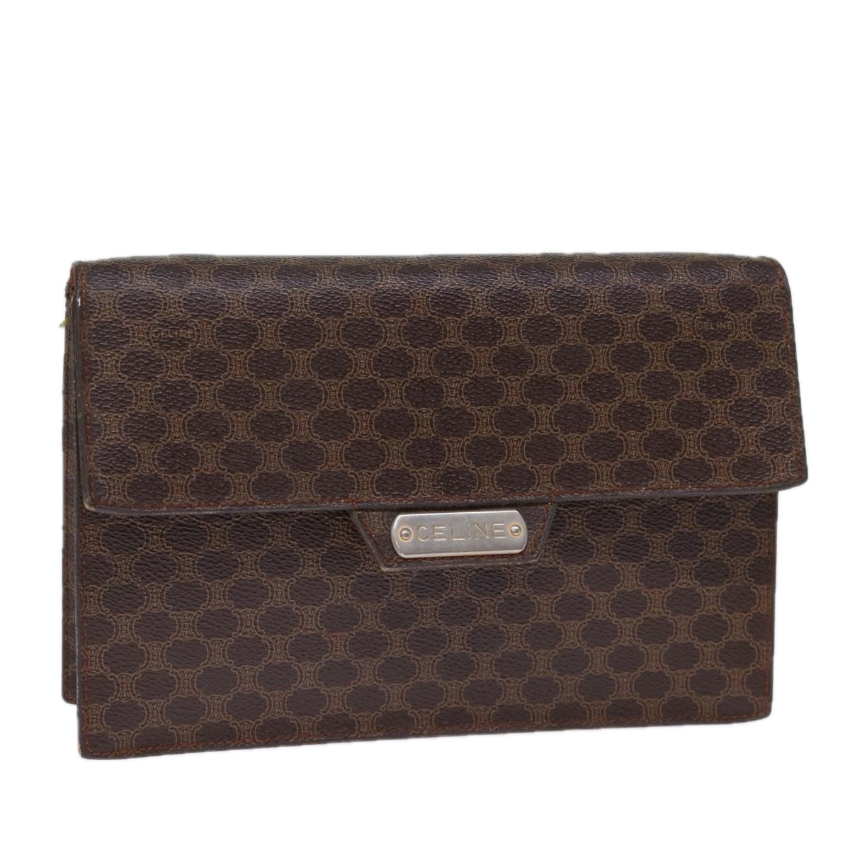 Celine Macadam Canvas Clutch Bag PVC Brown Auth bs13995