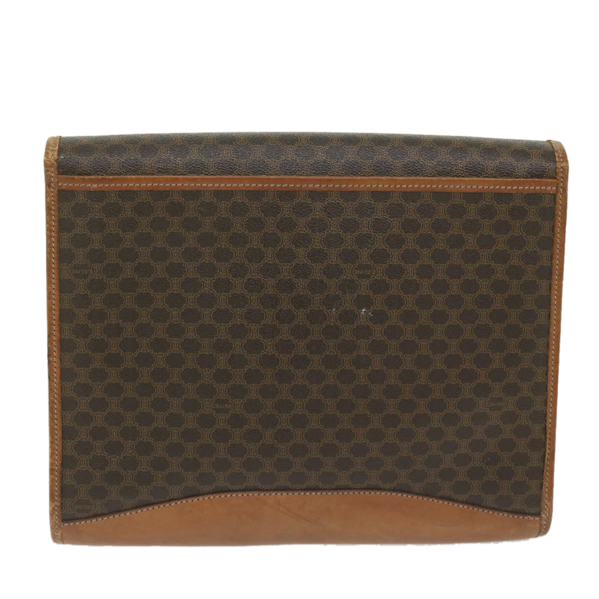 CELINE Macadam Canvas Clutch Bag PVC Leather Brown Auth 63592