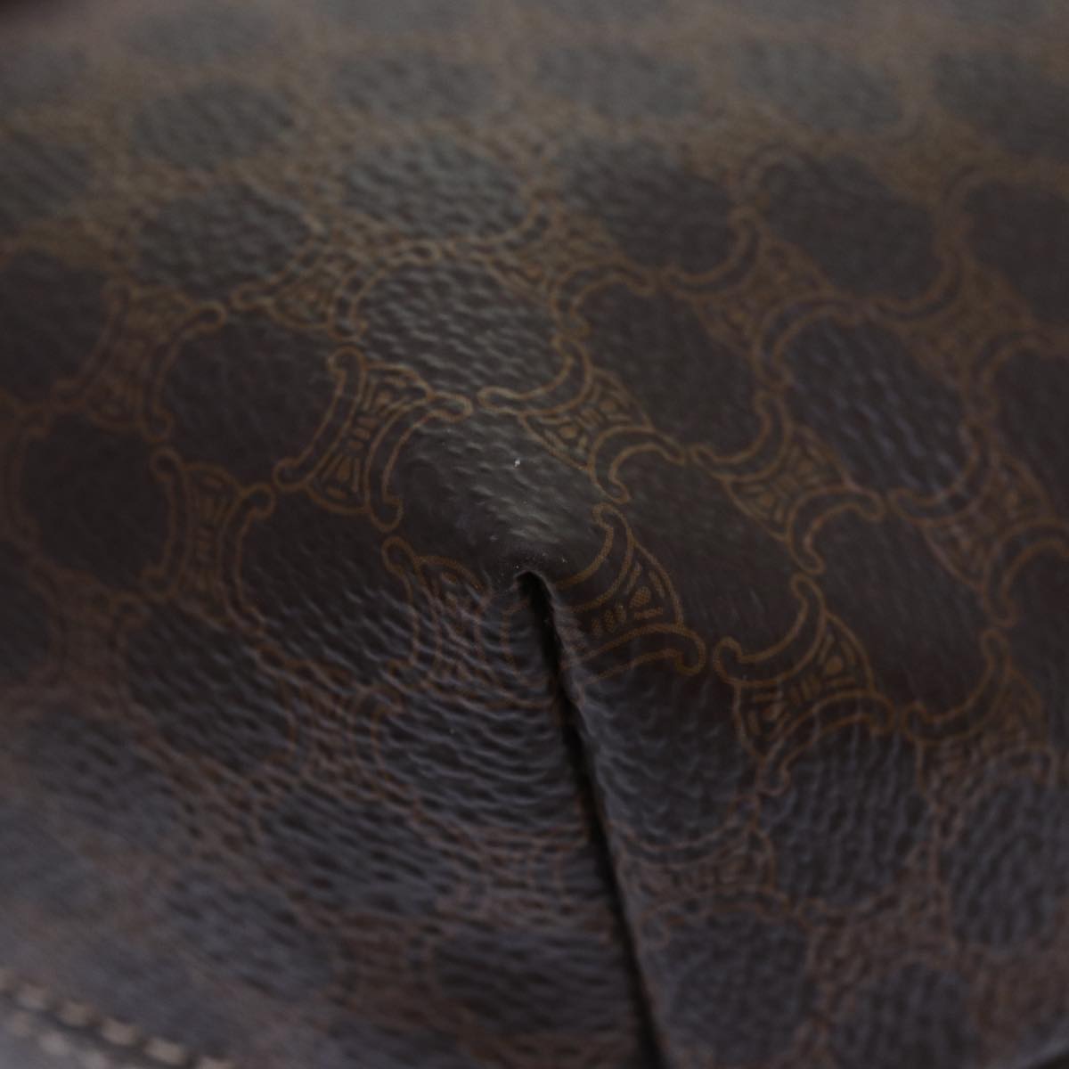 CELINE Macadam Canvas Hand Bag PVC Leather Brown Gold Auth 87145A