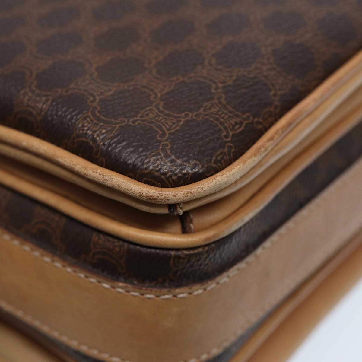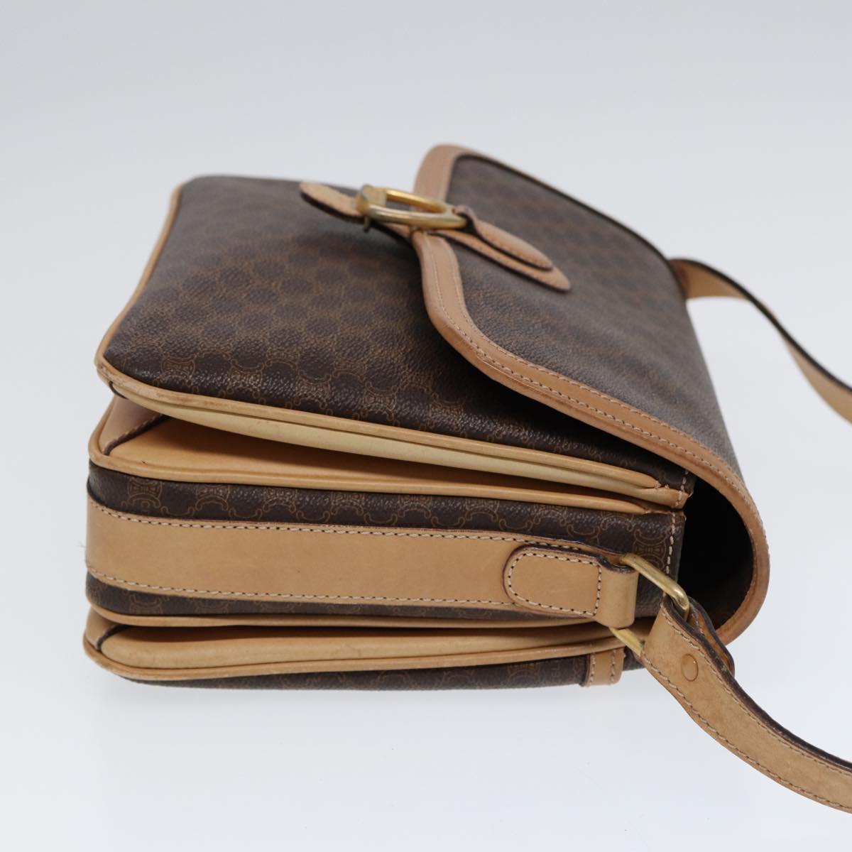 CELINE Macadam Canvas Shoulder Bag PVC Leather Brown Gold Auth bs17401