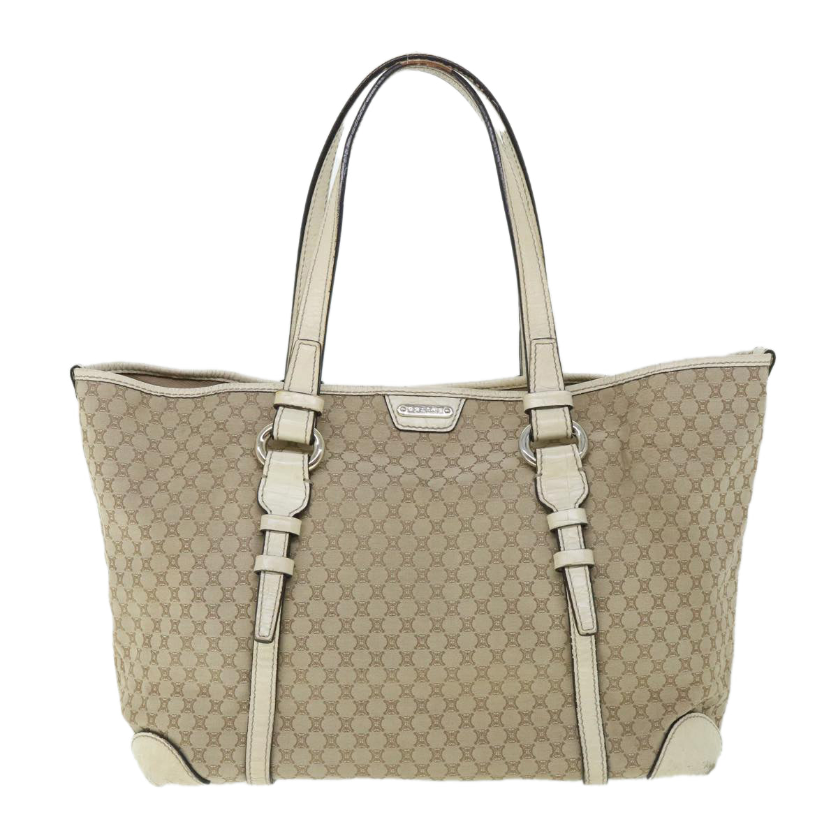 CELINE Macadam Canvas Tote Bag Beige Auth yk8665