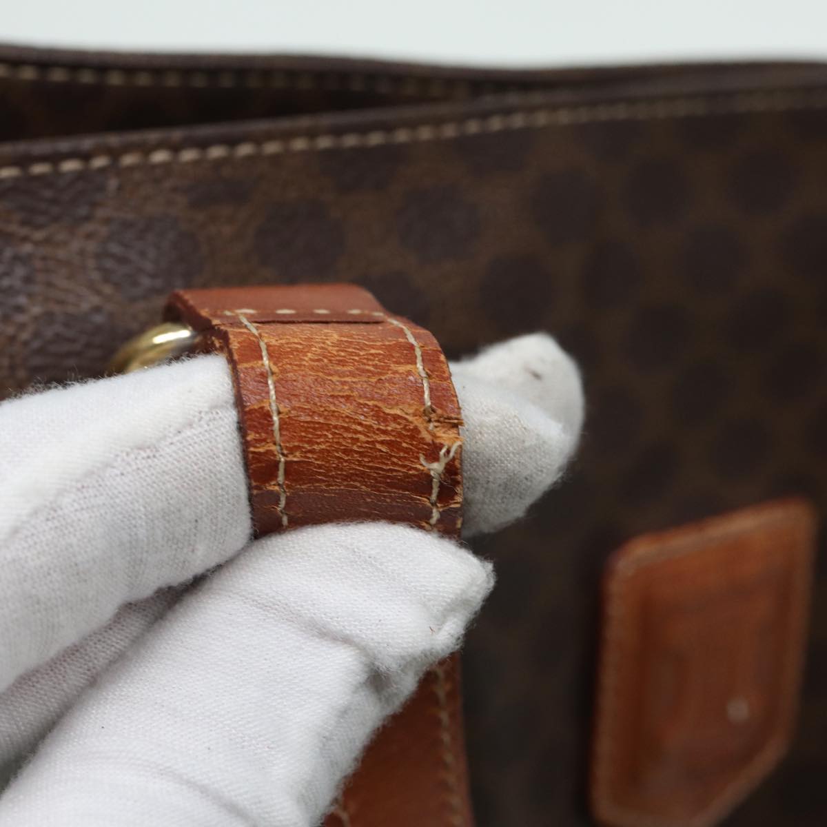 Celine Macadam Canvas Tote Bag PVC Leather Brown Auth 83250