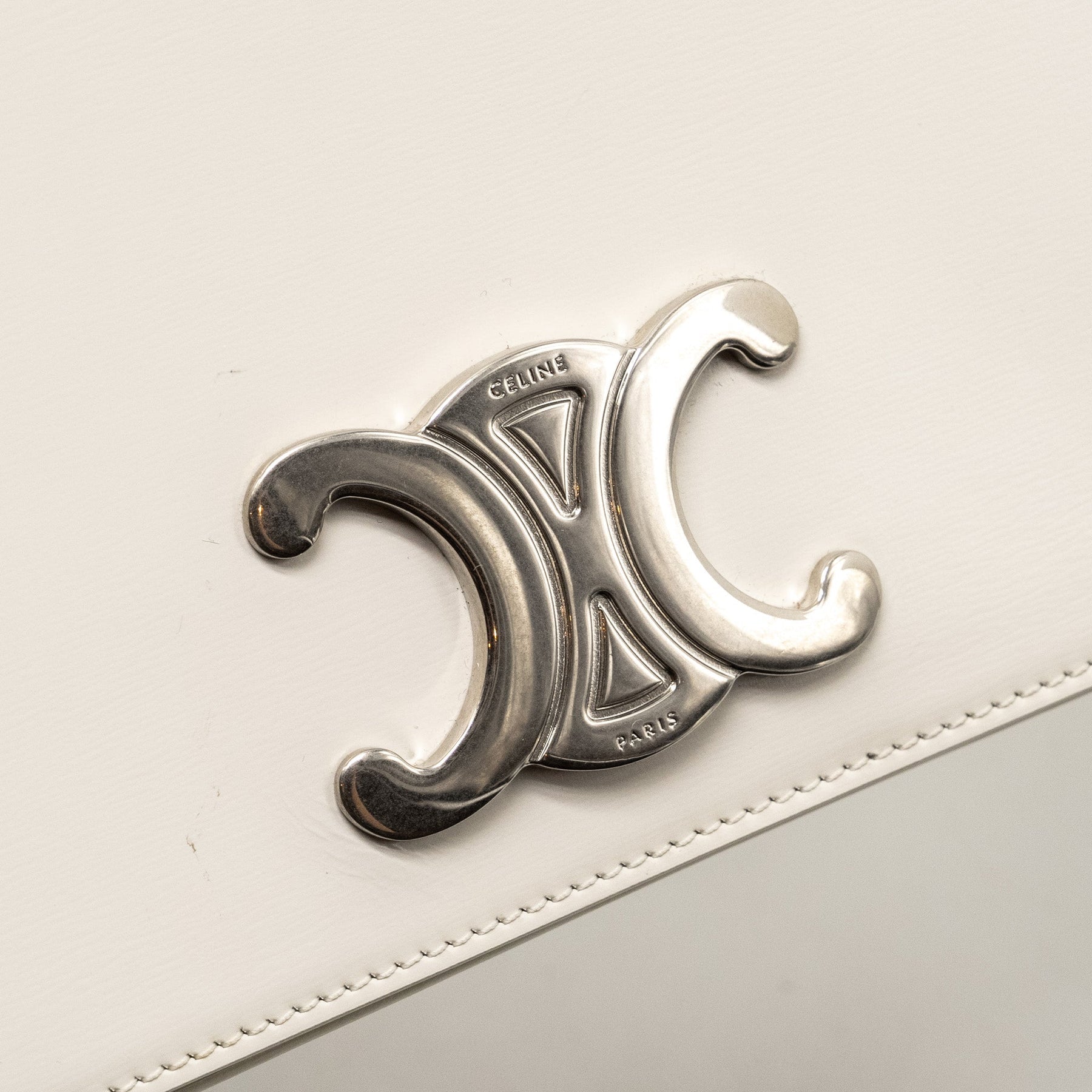 Celine Trapeze Triomphe Shoulder Bag Shiny Calfskin White