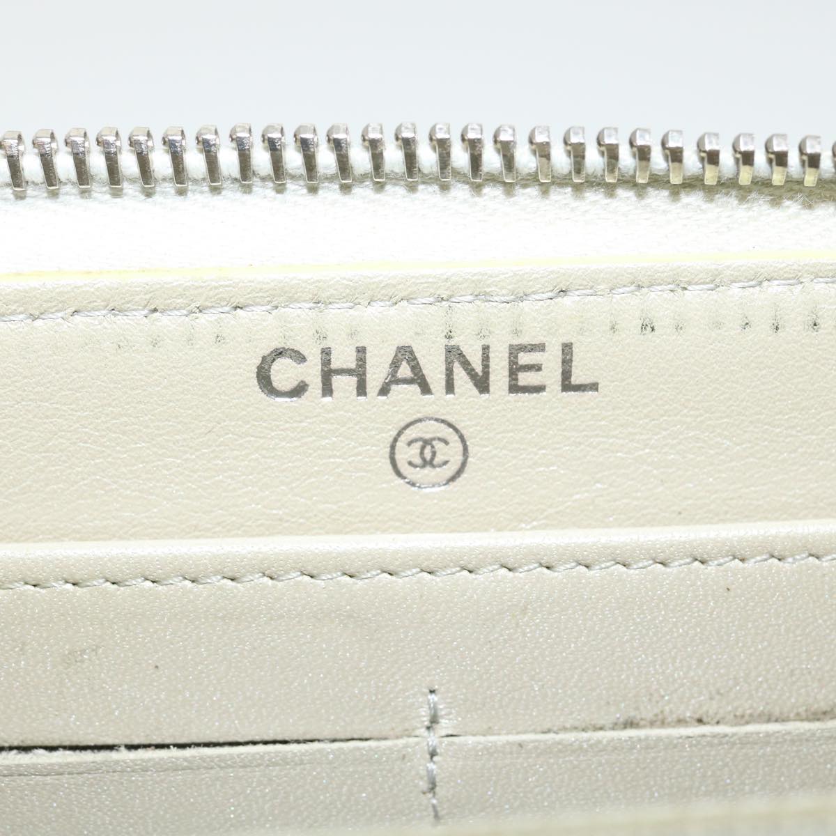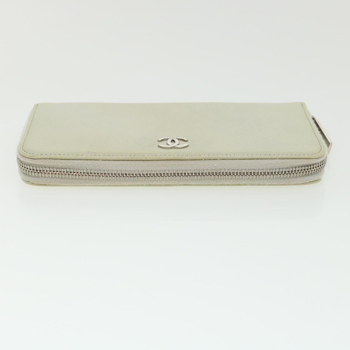 CHANEL Caviar Skin Long Wallet Leather Silver CC Auth am2797g
