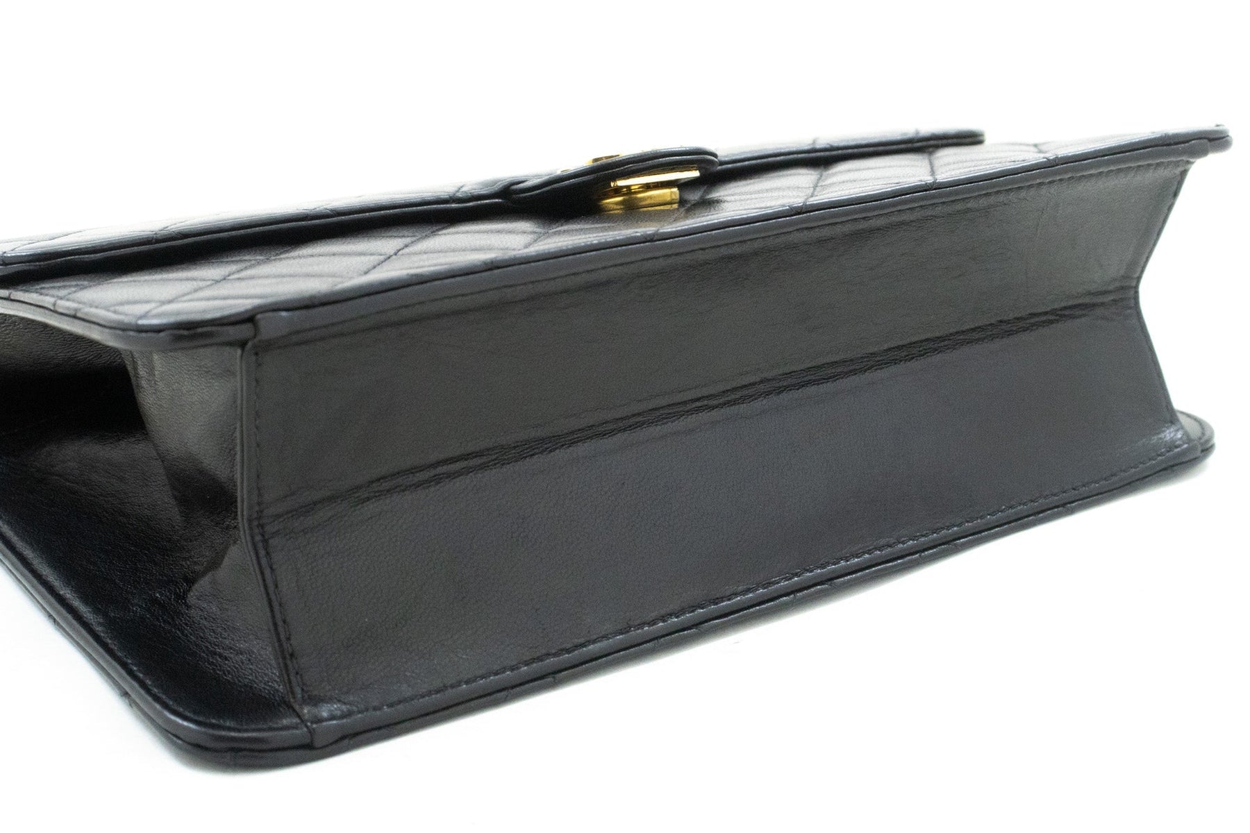 An CHANEL Chain Shoulder Bag Clutch Black Quilted New made of black Lambskin Purse.