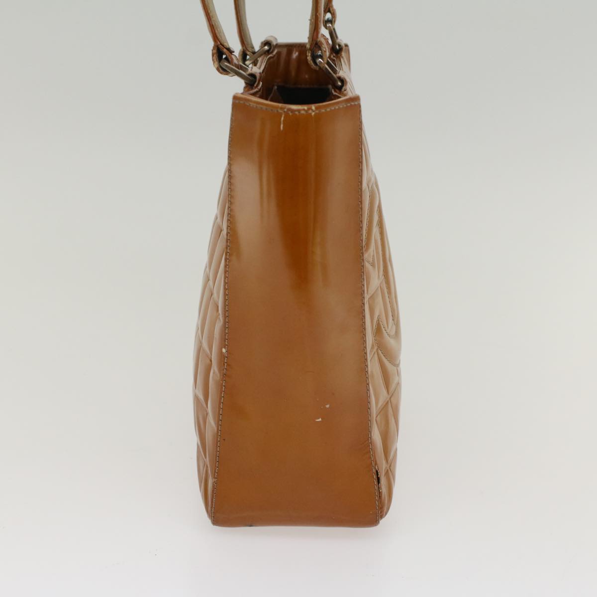 CHANEL Choco Bar Shoulder Bag Patent leather Yellow CC Auth 53382
