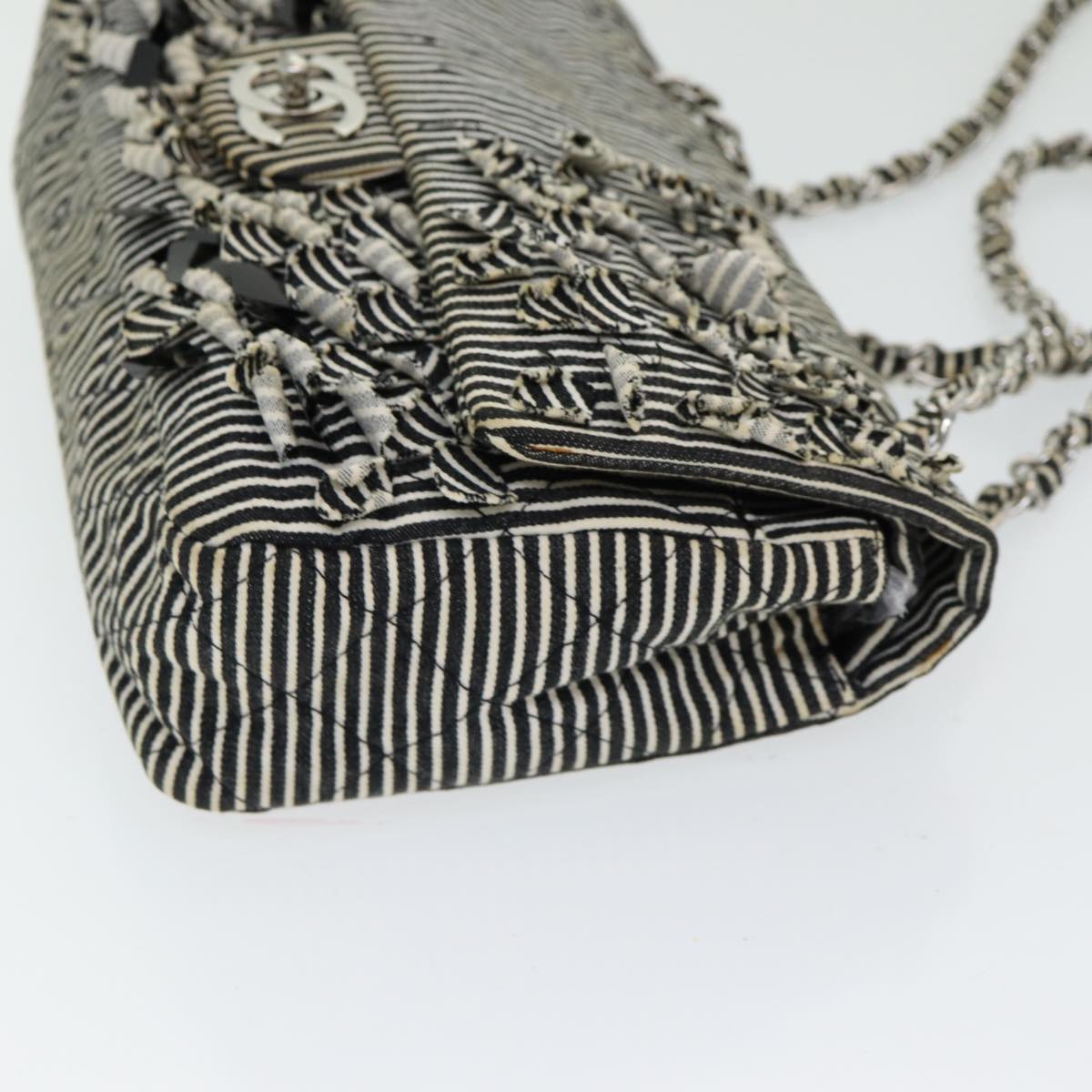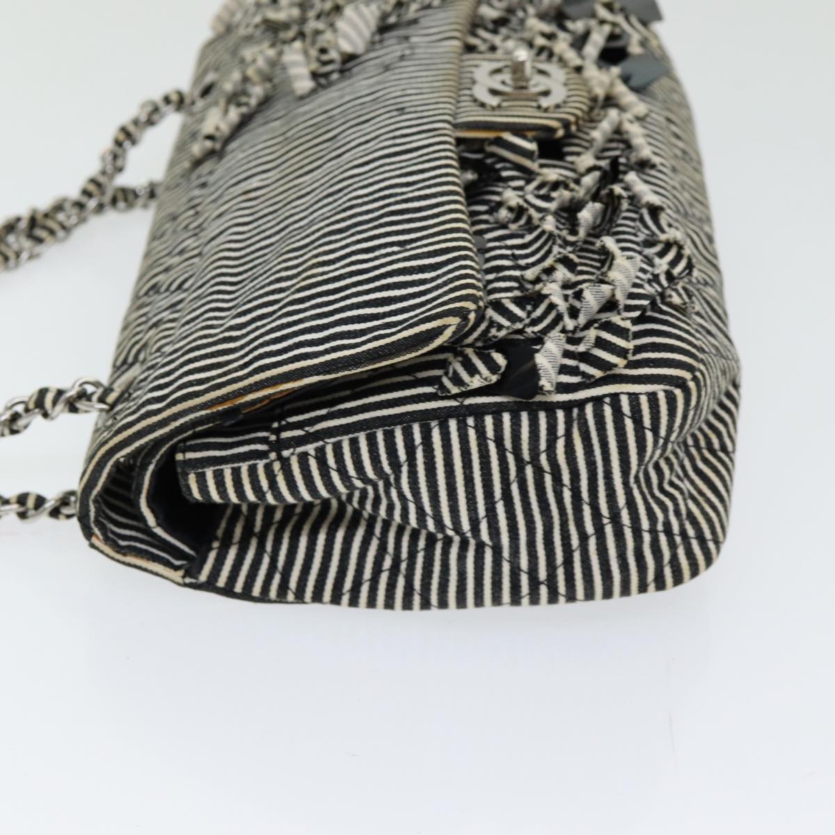 CHANEL Matelasse Turn Lock Chain Hand Bag Canvas Black Silver CC Auth bs16629