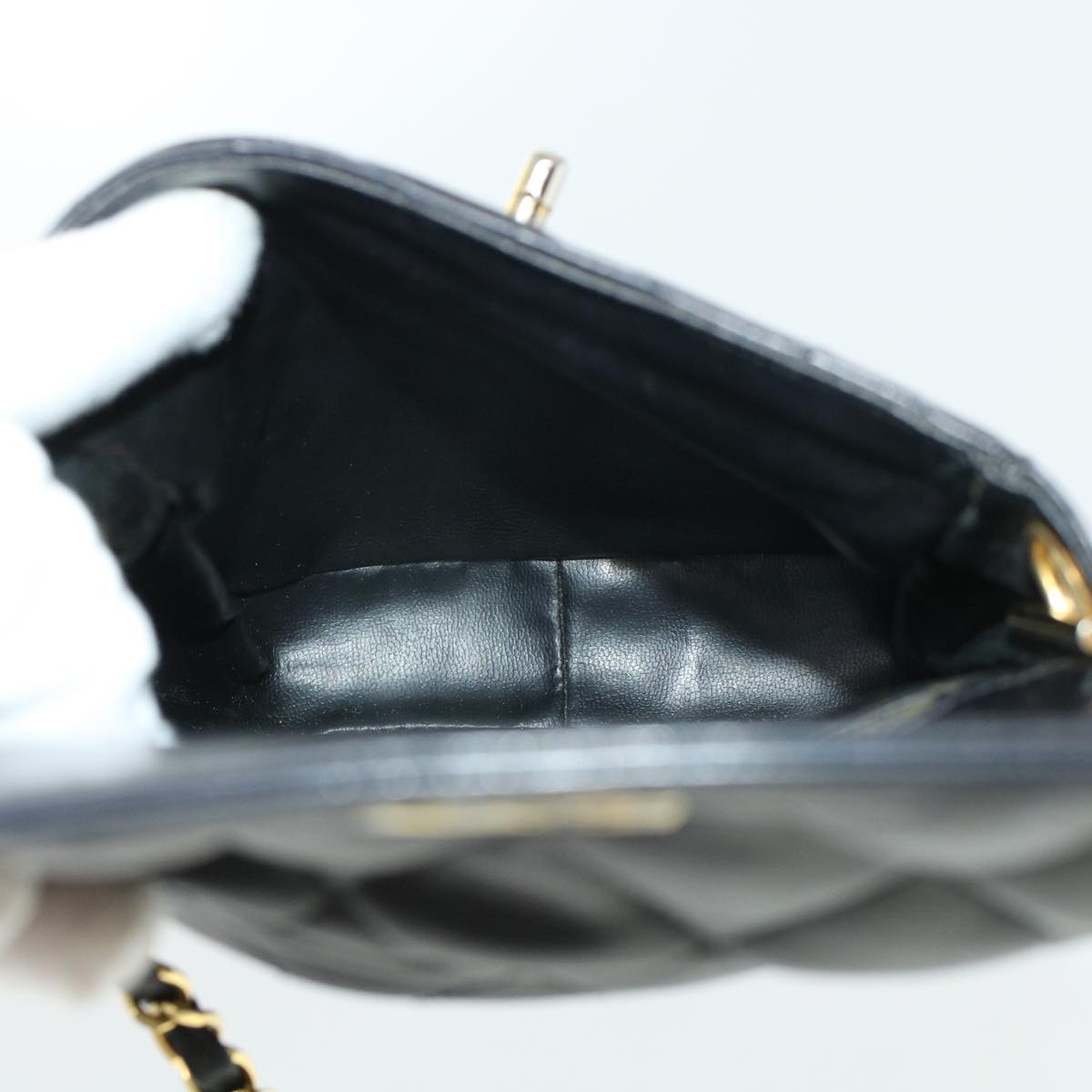 CHANEL Matelasse Turn Lock Chain Shoulder Bag Lamb Skin Black CC Auth am4542