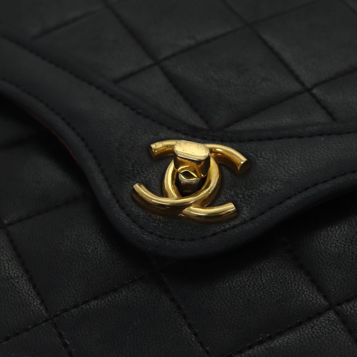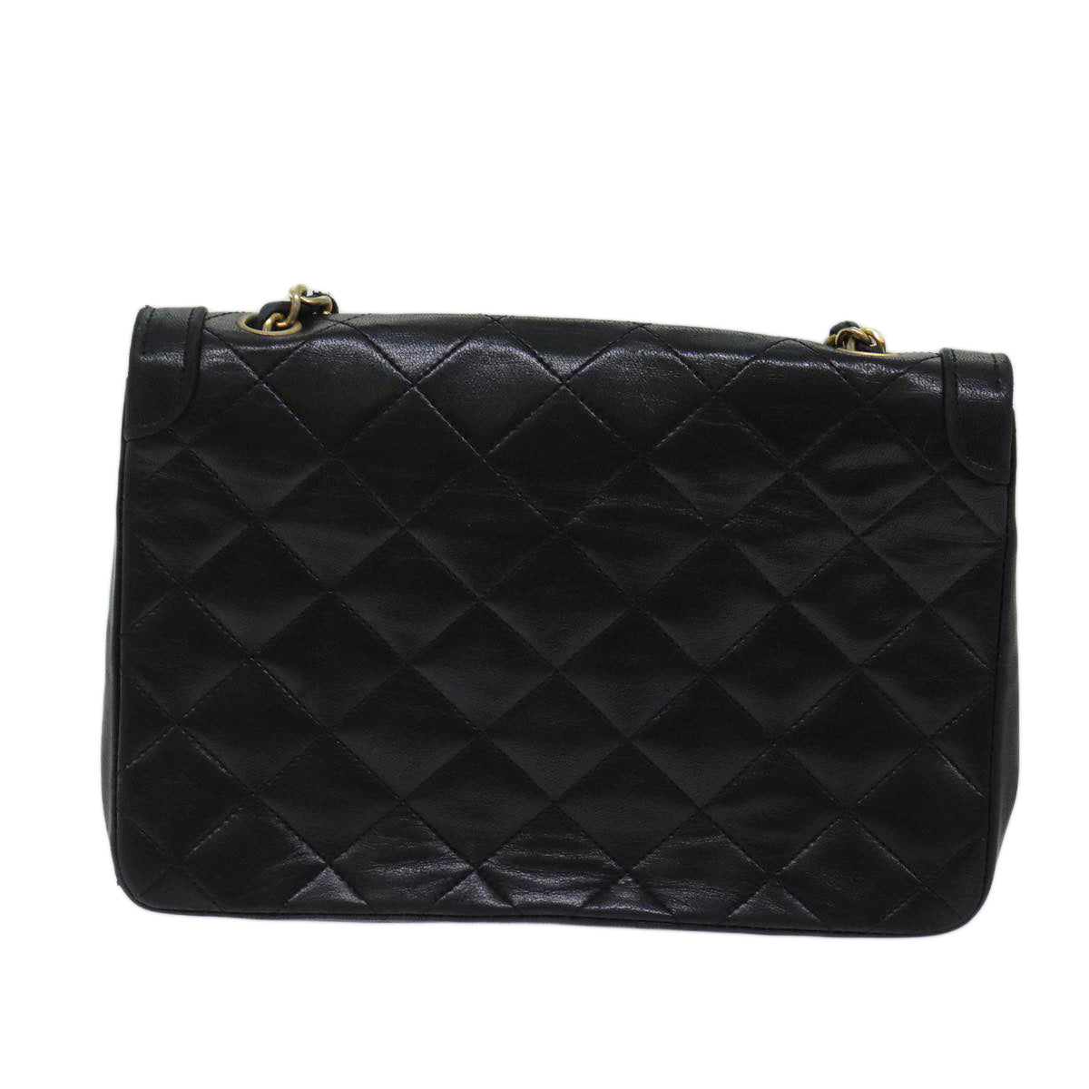 CHANEL Matelasse Turn Lock Chain Shoulder Bag Lamb Skin Black CC Auth yk11890A