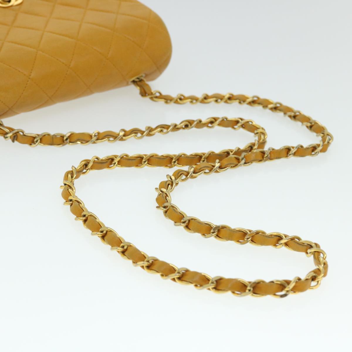 CHANEL Matelasse Turn Lock Chain Shoulder Bag Lamb Skin Orange CC Auth 51273A