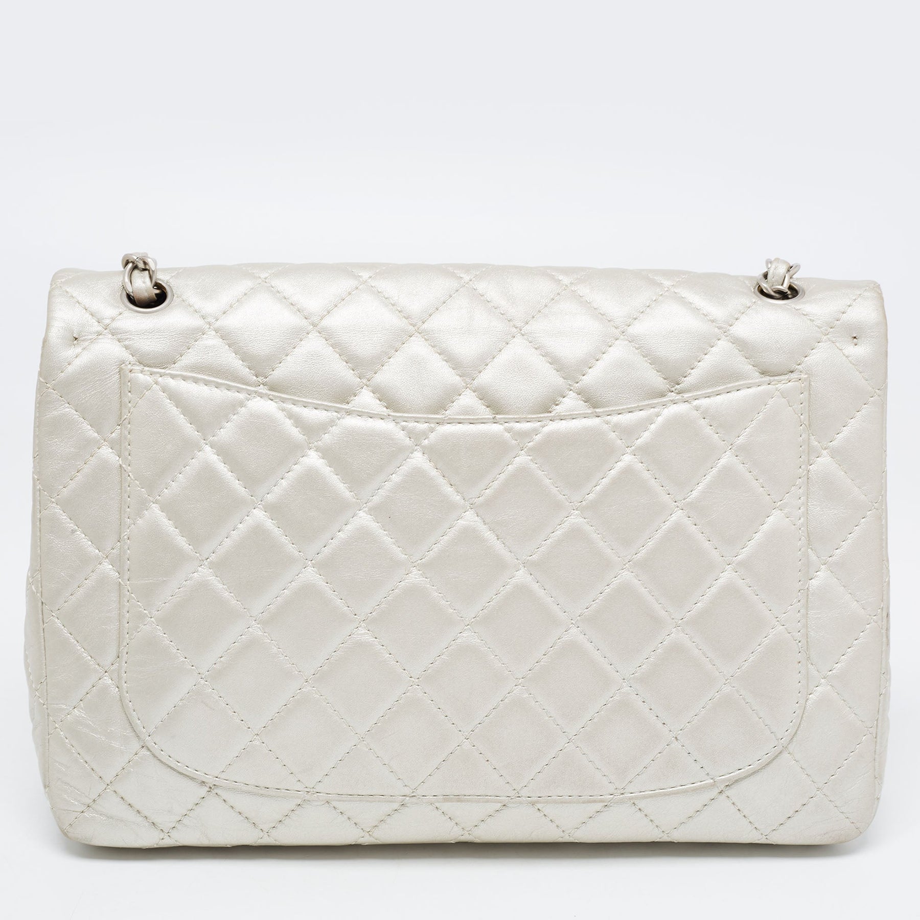 CHANEL Metallic Grey Quilted Leather Maxi Classic Single New Bag