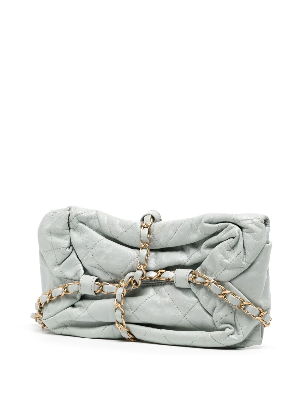 Its diamond-quilted construction is beautifully complemented by the leather and chain-link trim and the maison's signature interlocking CC logo charm.