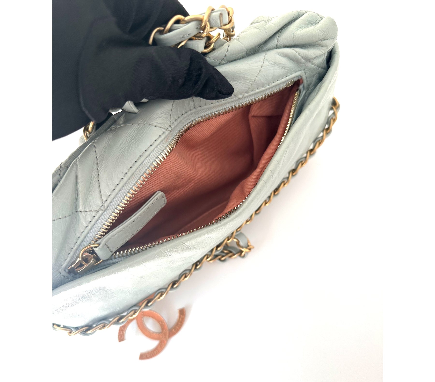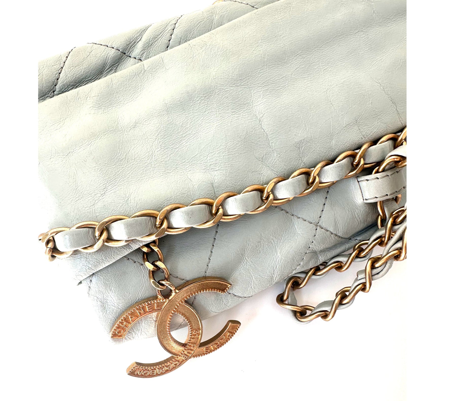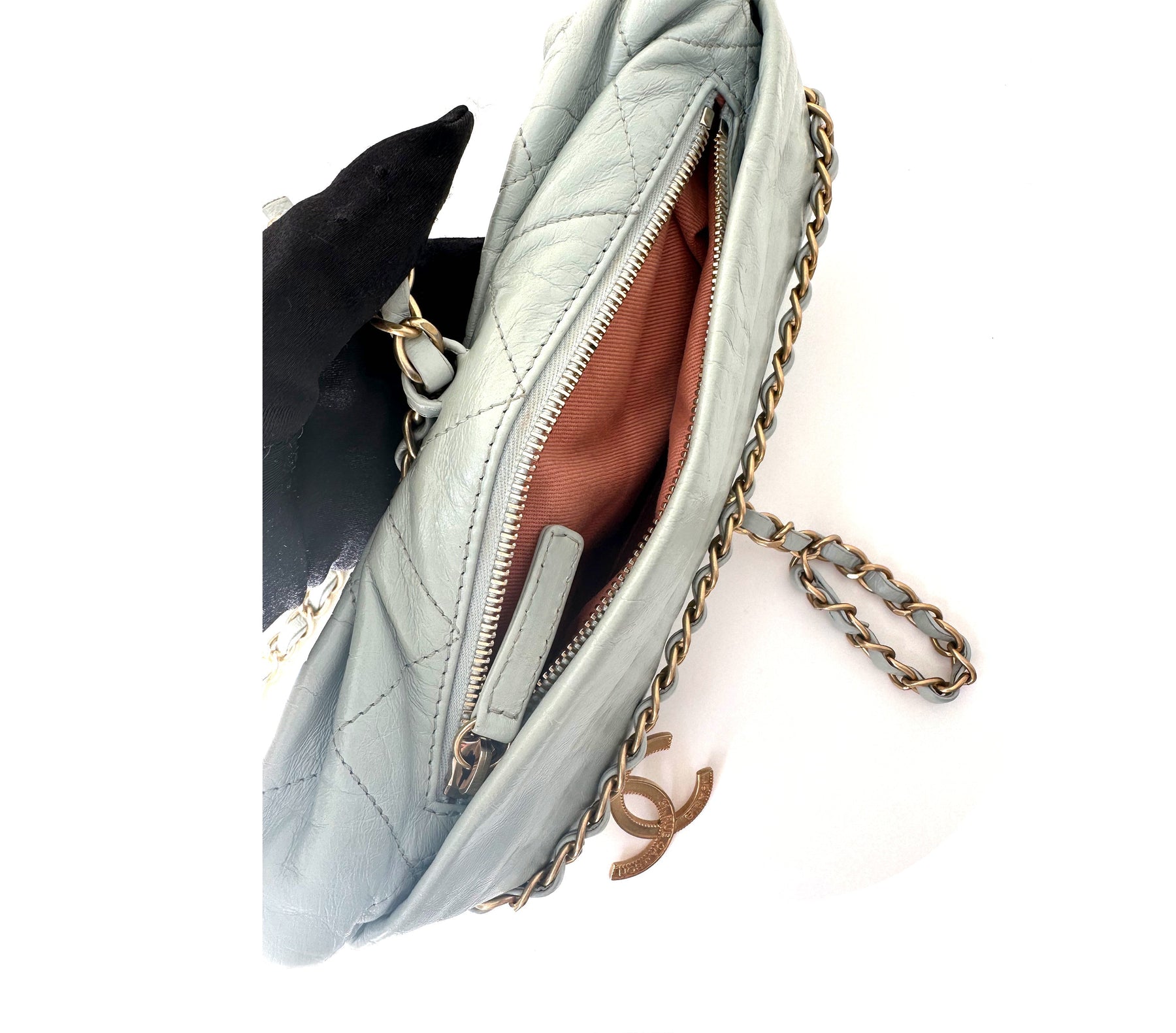 Mint green Calf leather Diamond quilting Caged design Signature interlocking CC logo Leather and chain-link trim Top zip fastening gold-tone hardware Very New Condition: Some minor New of wear on the leather.