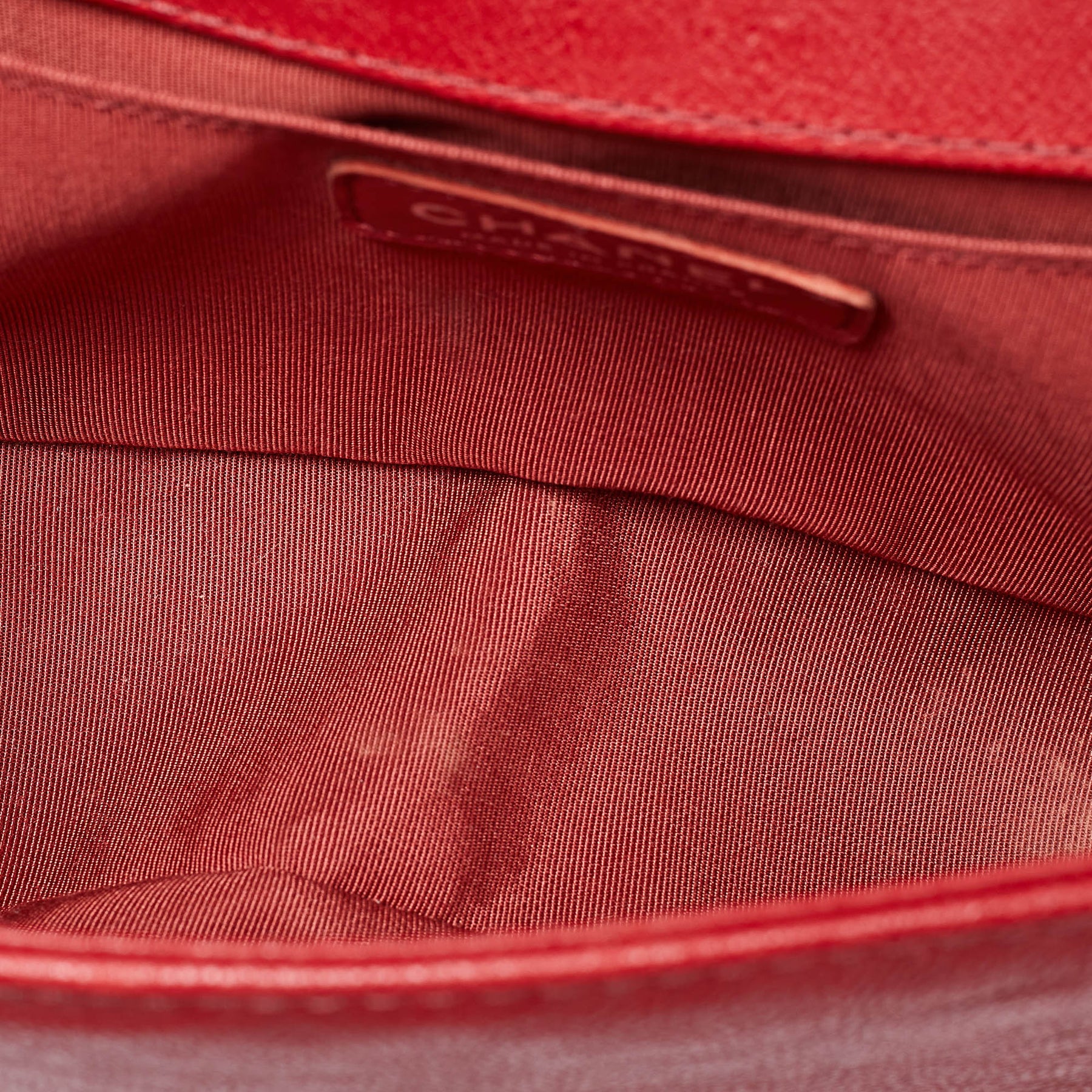 CHANEL Red Quilted Leather Medium Chain Around Boy New Bag