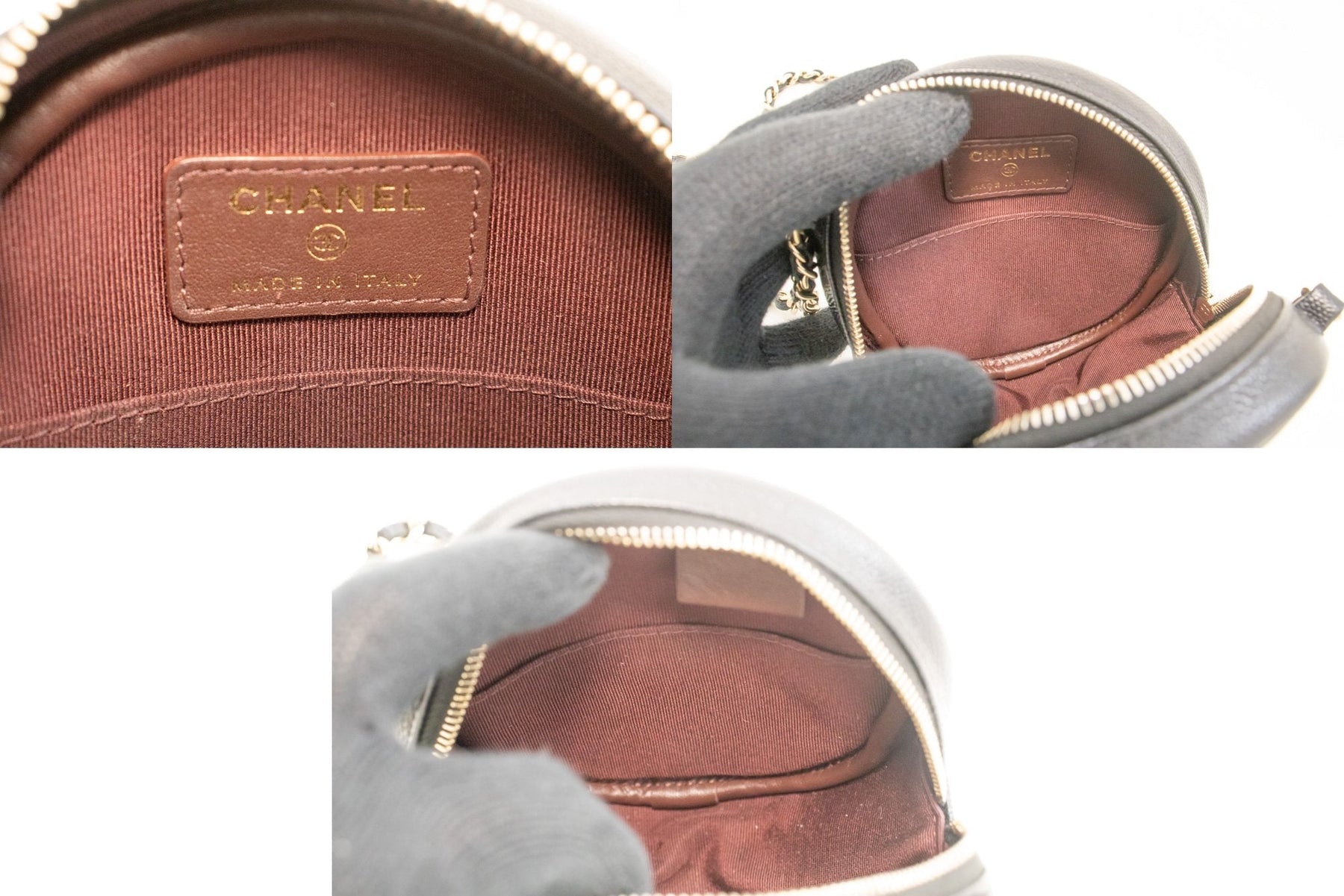 An CHANEL Round Zip Caviar Small Chain Shoulder Bag Black Quilted.