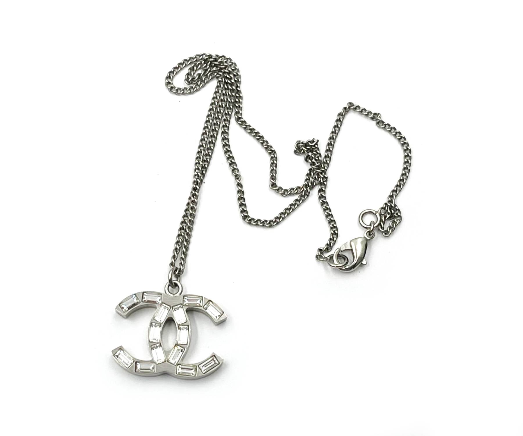 Chanel Silver CC Baguette Double Face Pendant Necklace.