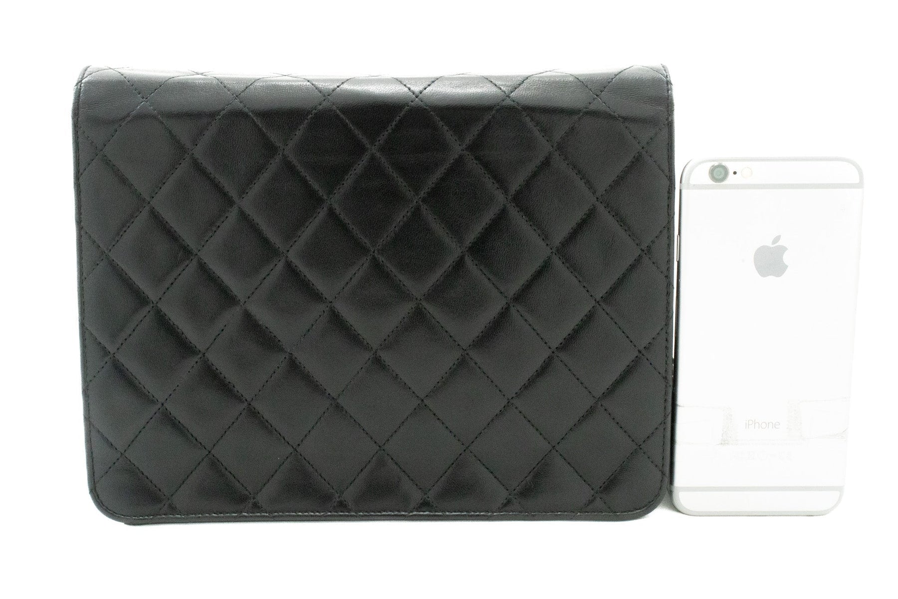 An CHANEL Small Chain Shoulder Bag Clutch Black Quilted New made of black Lambskin.