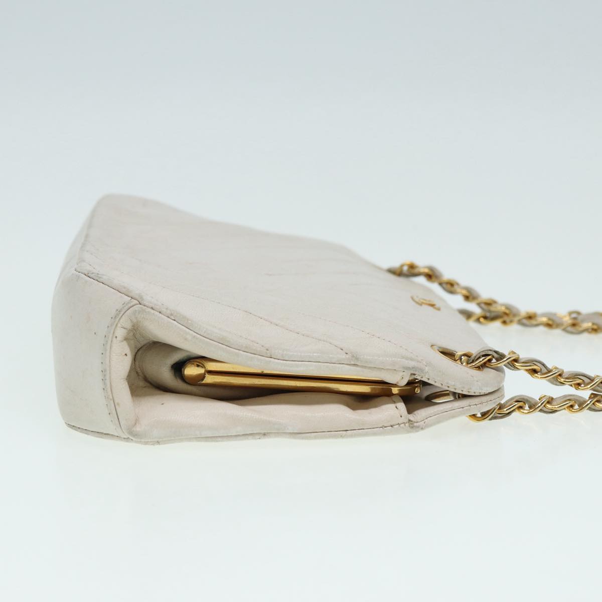 CHANEL V Stitch Chain Hand Bag Leather White CC Auth yk14103