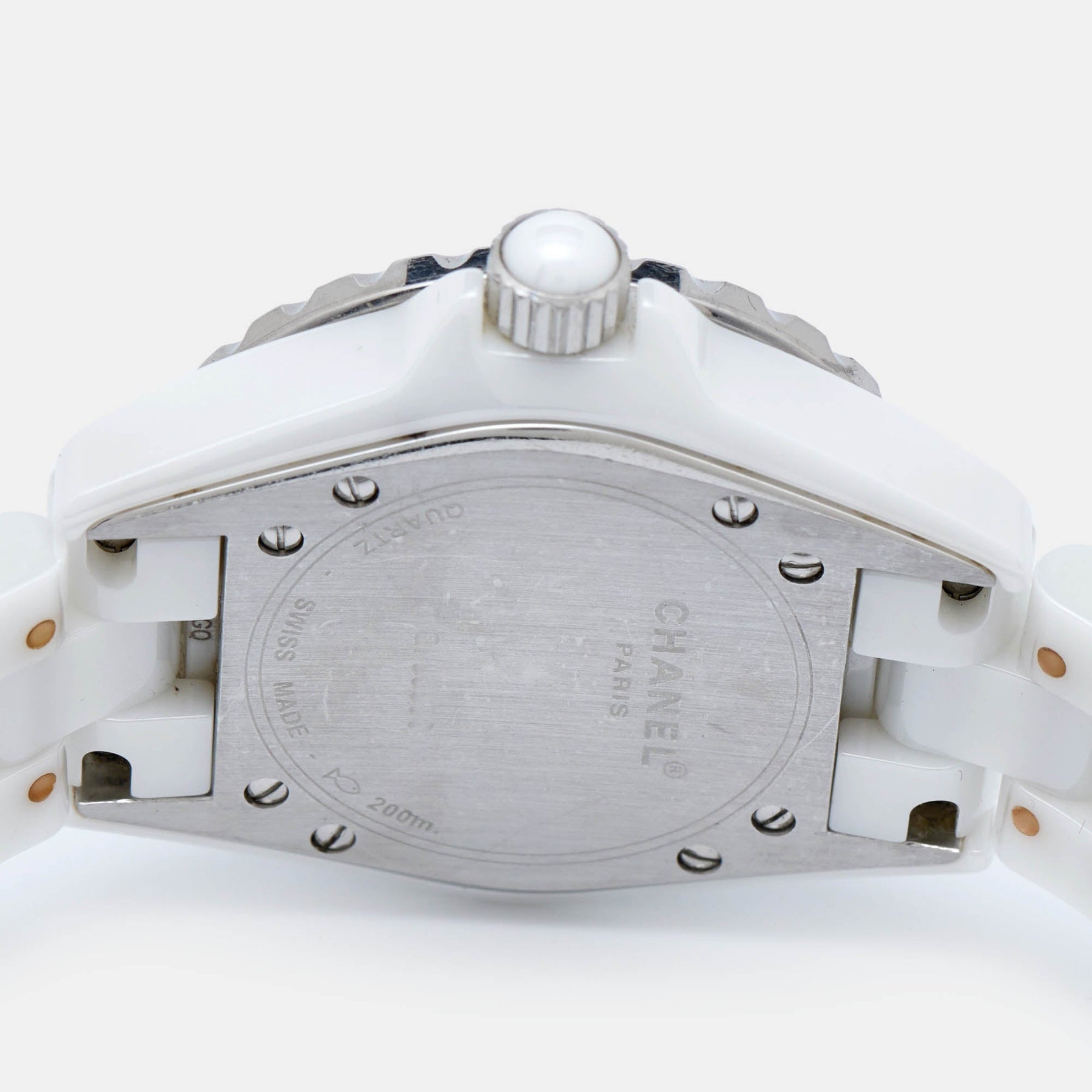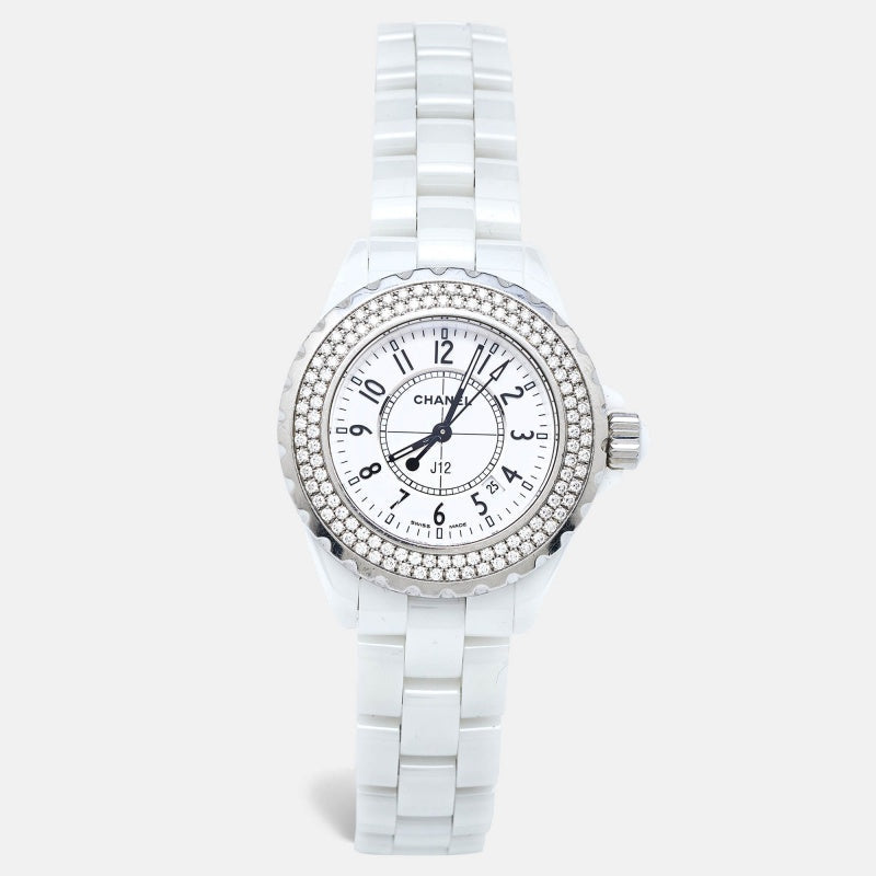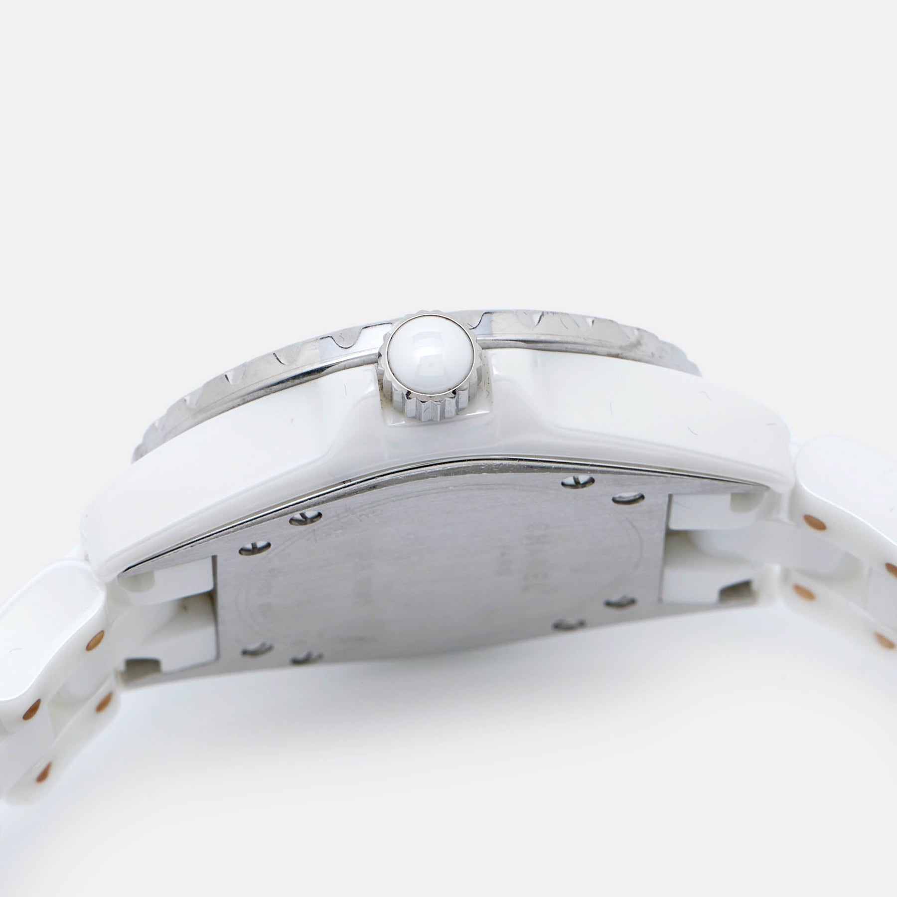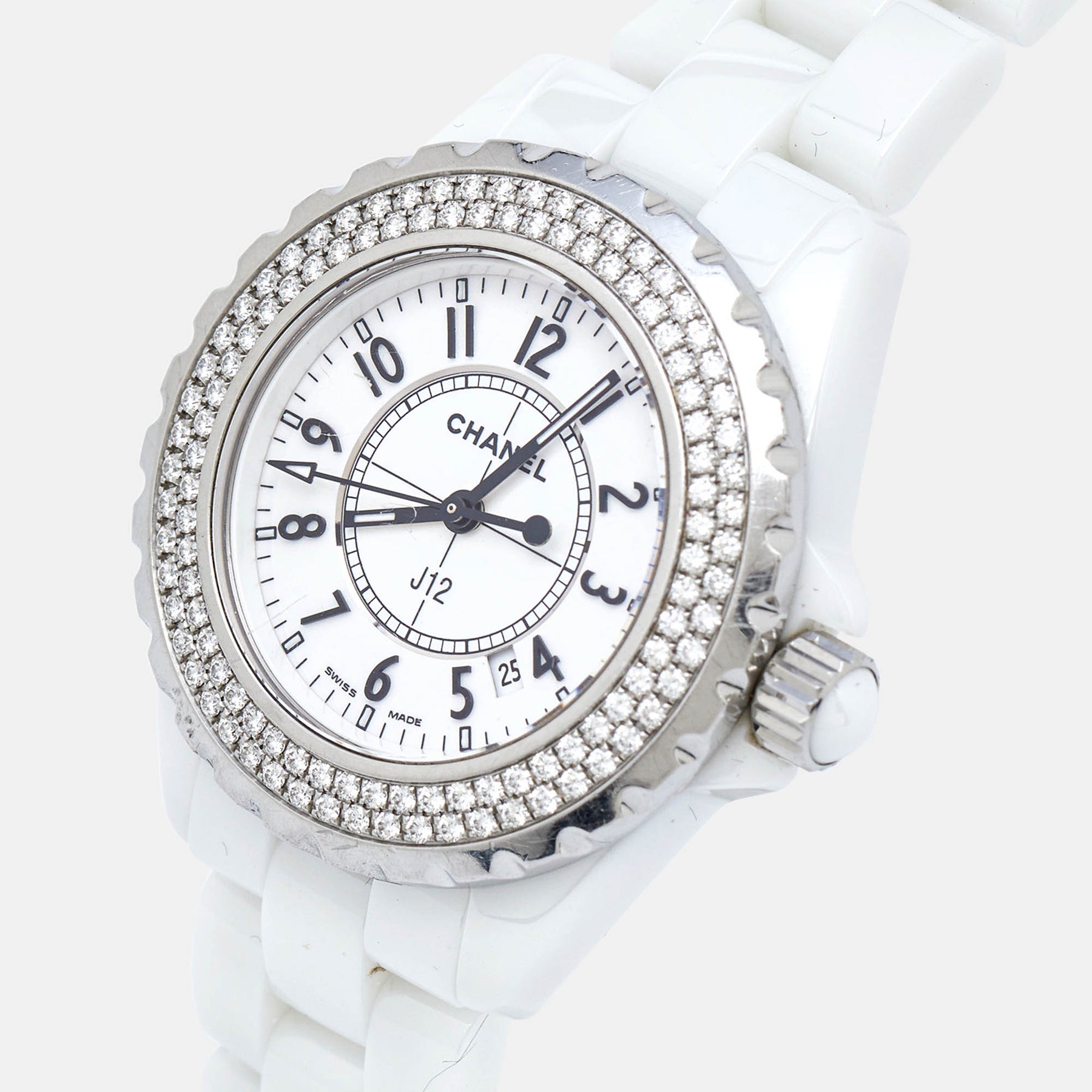 CHANEL White Ceramic Stainless Steel Diamond J12 H0967 Women's Wristwatch 33 mm