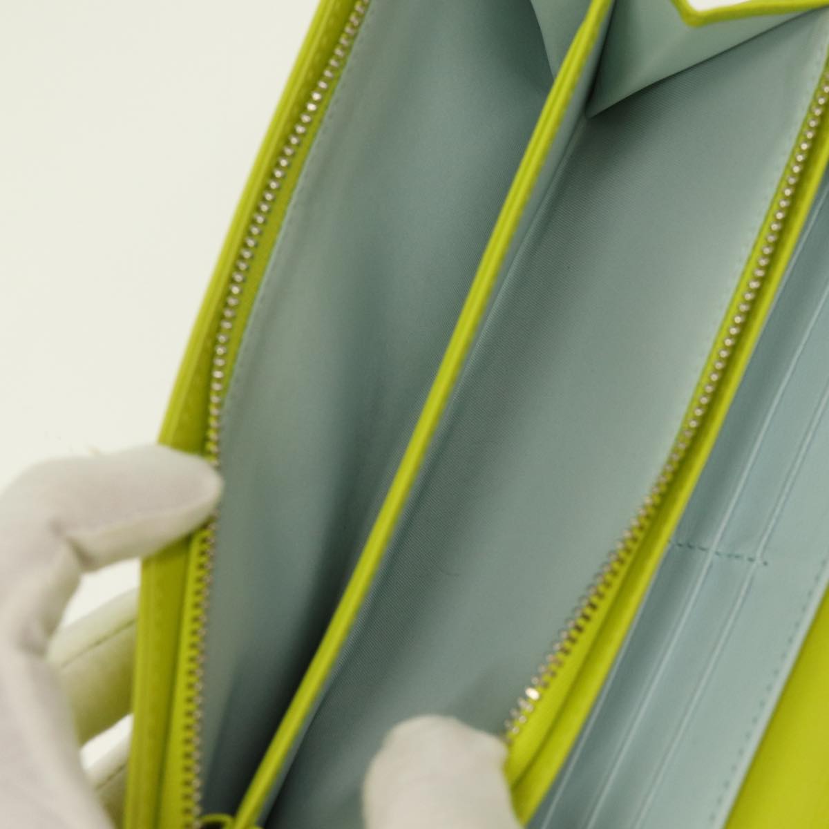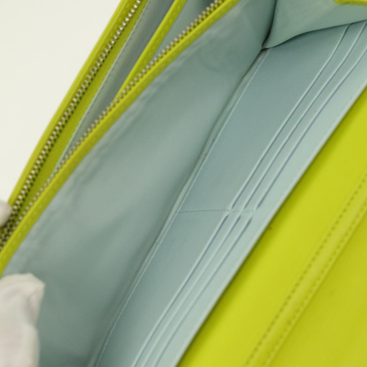 CHRISTIAN DIOR Chain Canage Wallet Leather Yellow Silver Auth 84830