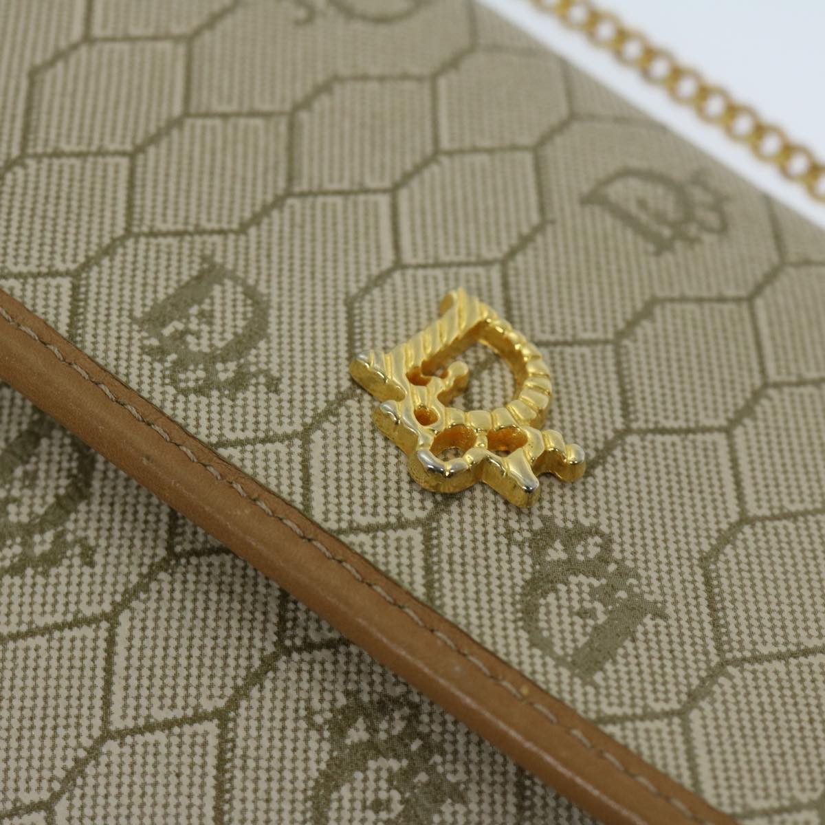CHRISTIAN DIOR Honeycomb Canvas Chain Shoulder Bag PVC Beige Auth am5929