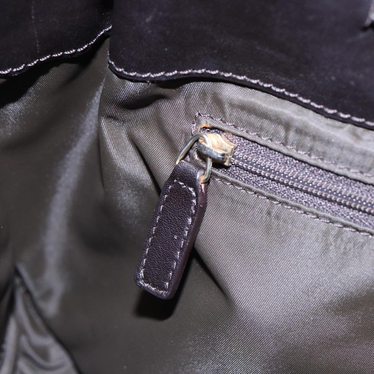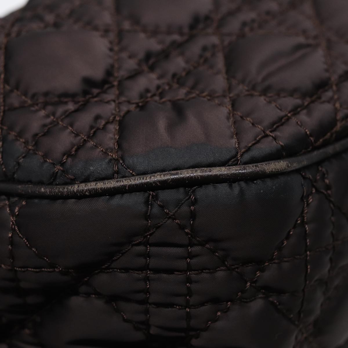 CHRISTIAN DIOR Lady Dior Canage Hand Bag Nylon Brown Gold Auth ep5346