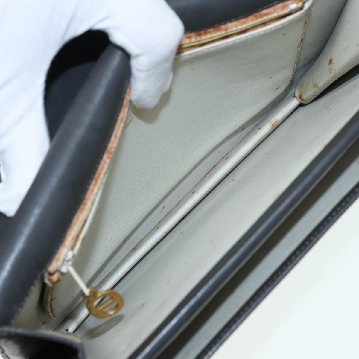 CHRISTIAN DIOR Shoulder Bag Leather Gray Gold Auth 87198