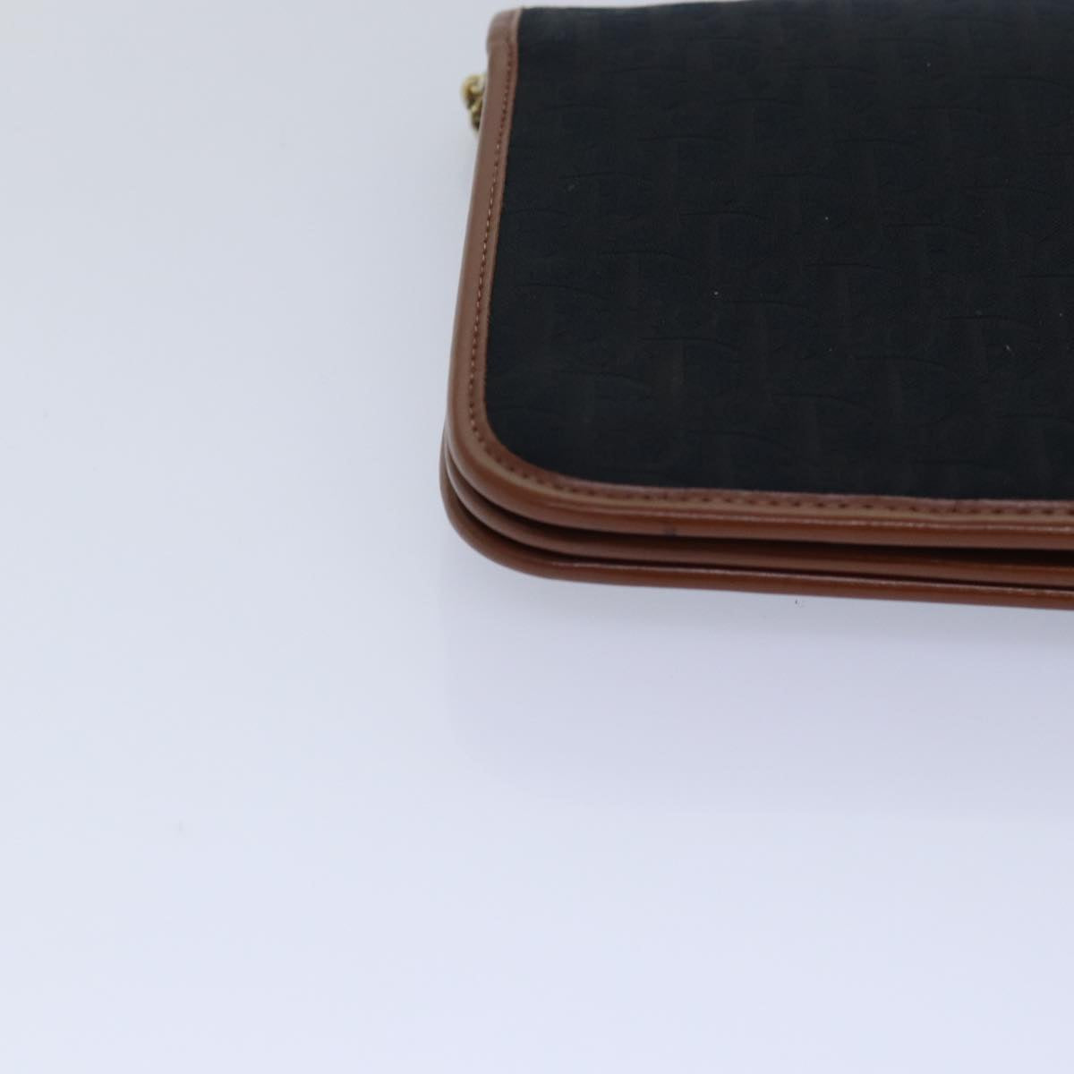 CHRISTIAN DIOR Trotter Canvas Chain Shoulder Bag Black Auth 78392