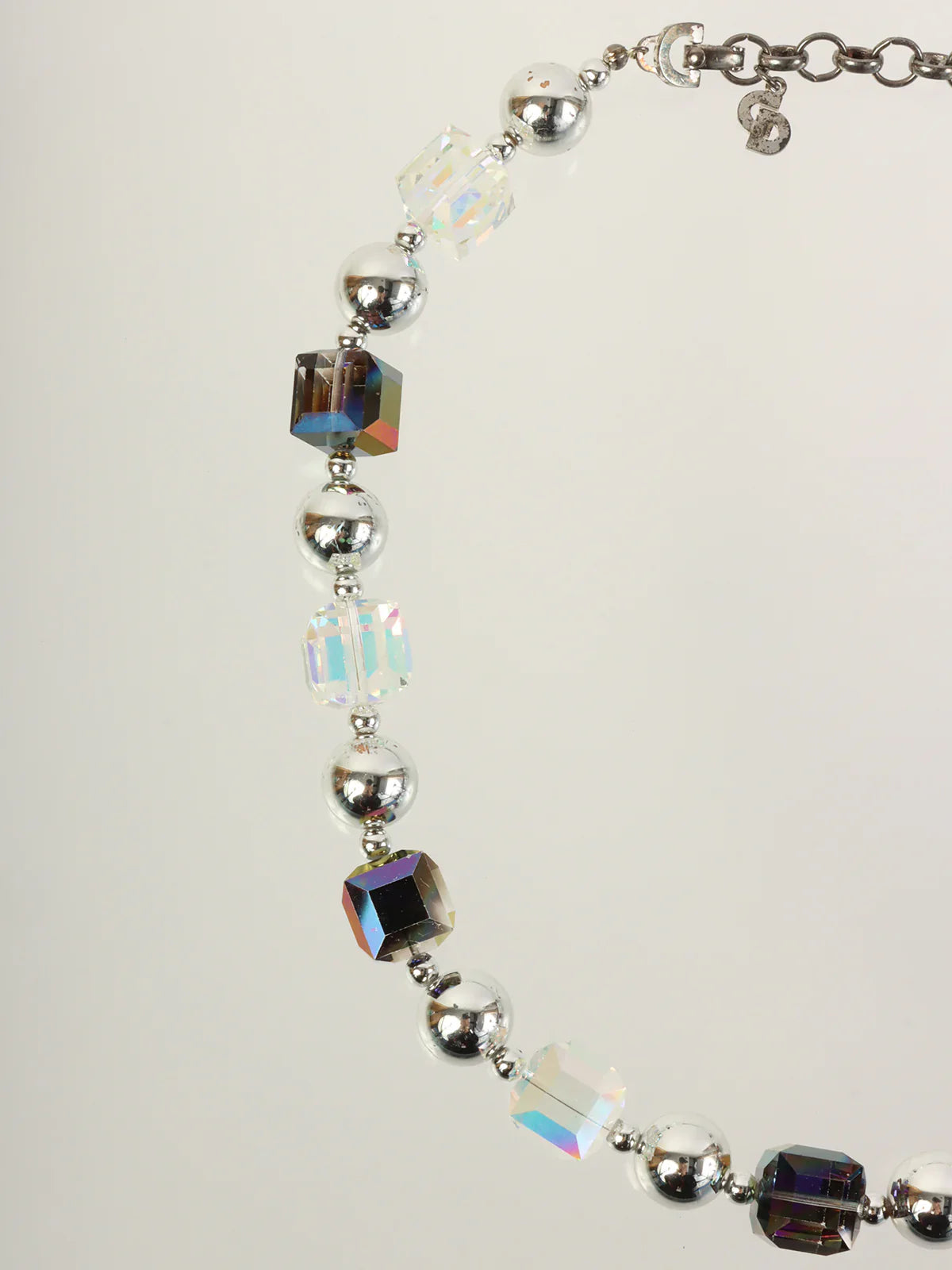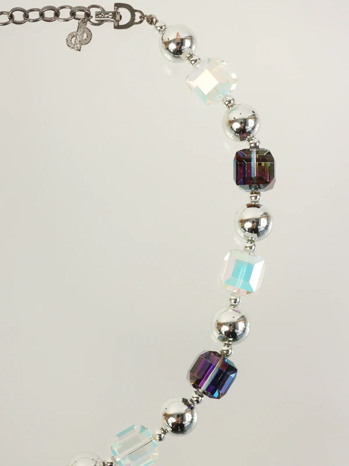 DIOR Aurora Bijoux Logo Charm Necklace Silver/Clear/Purple