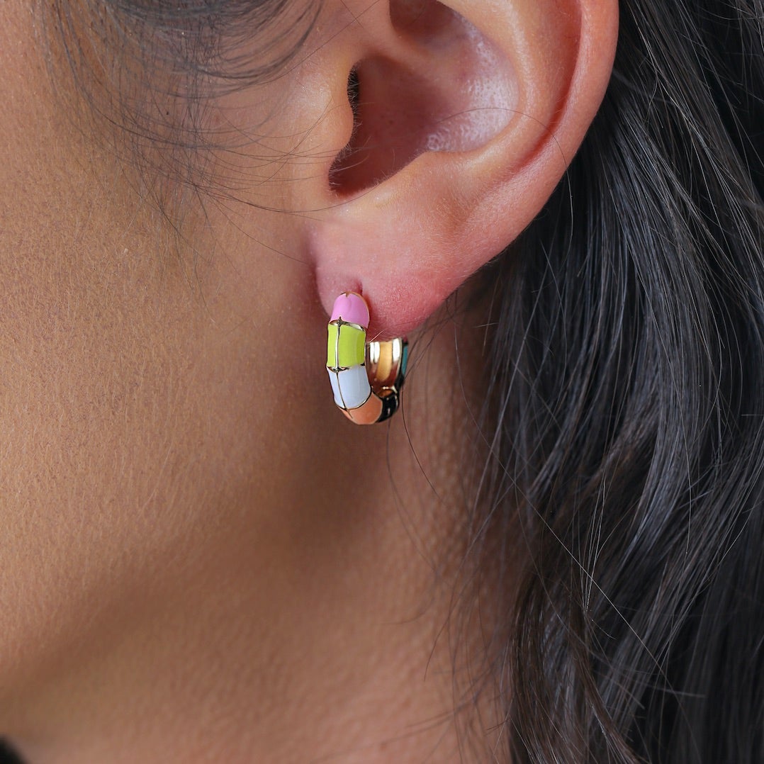 Add a pop of color to any outfit with these super cute Multi-Colored Hoop Earrings.
