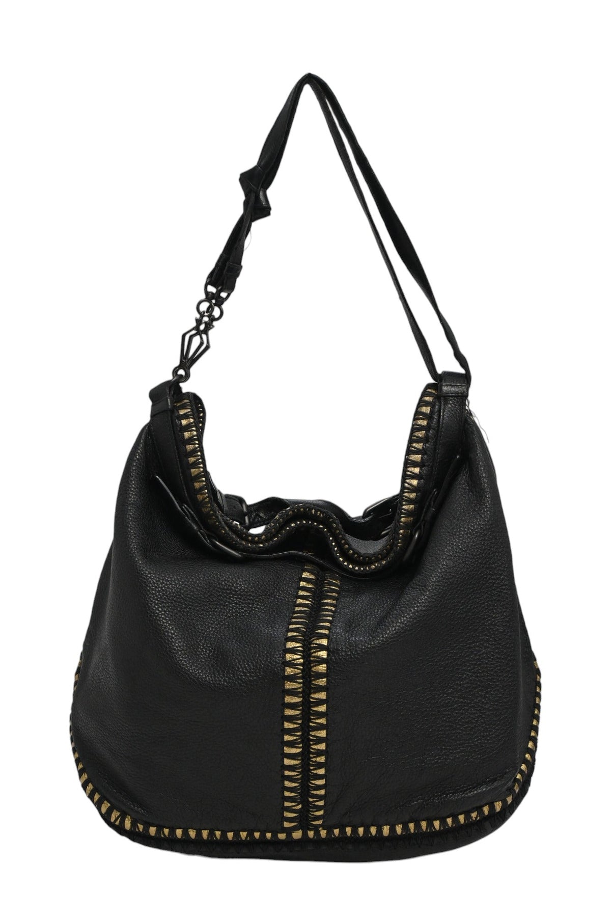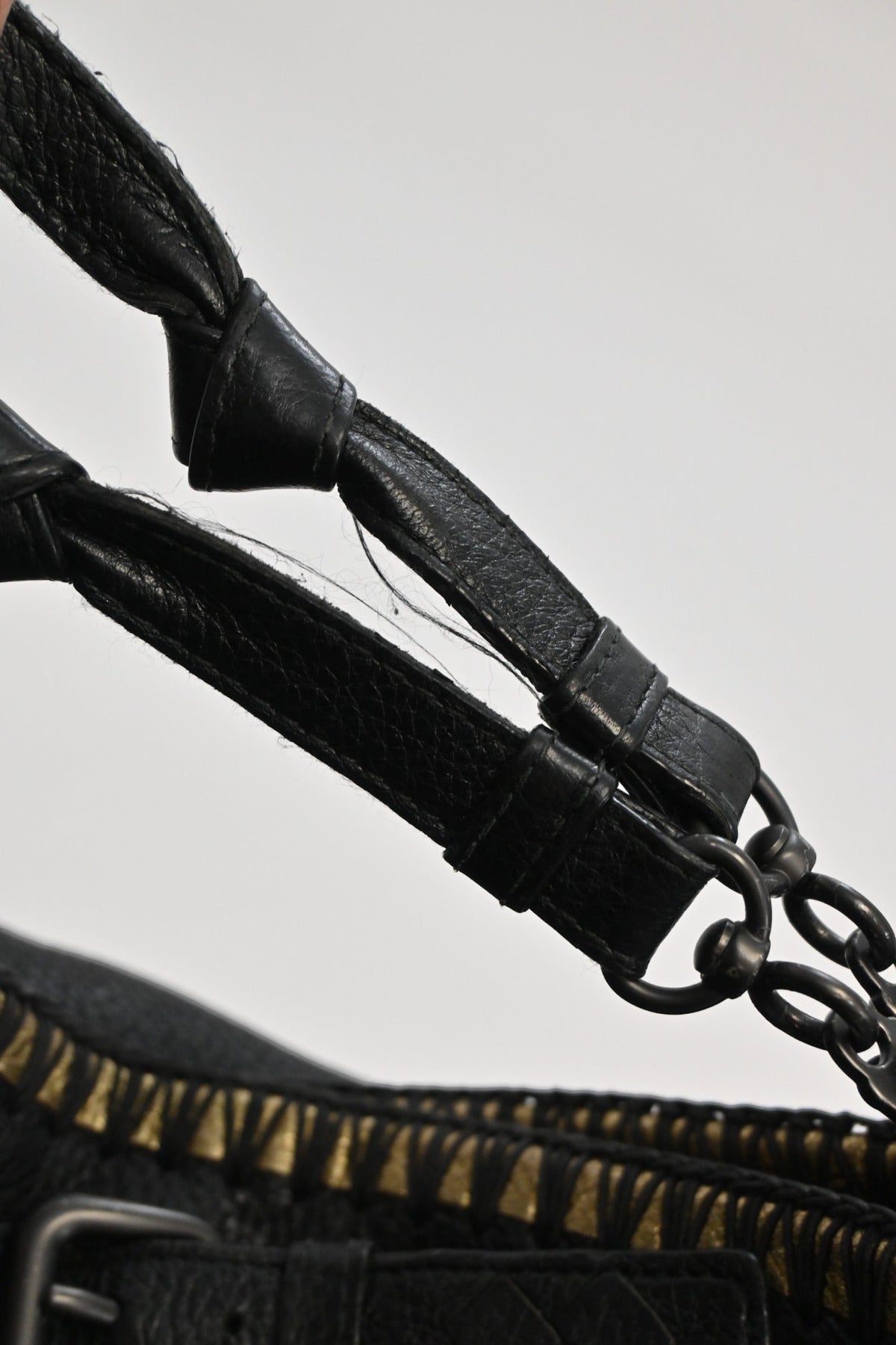 Top Quality Bottega Veneta Black and gold foiled leather Oro Cervo Ucinetto two-way hobo bag with detachable shoulder strap