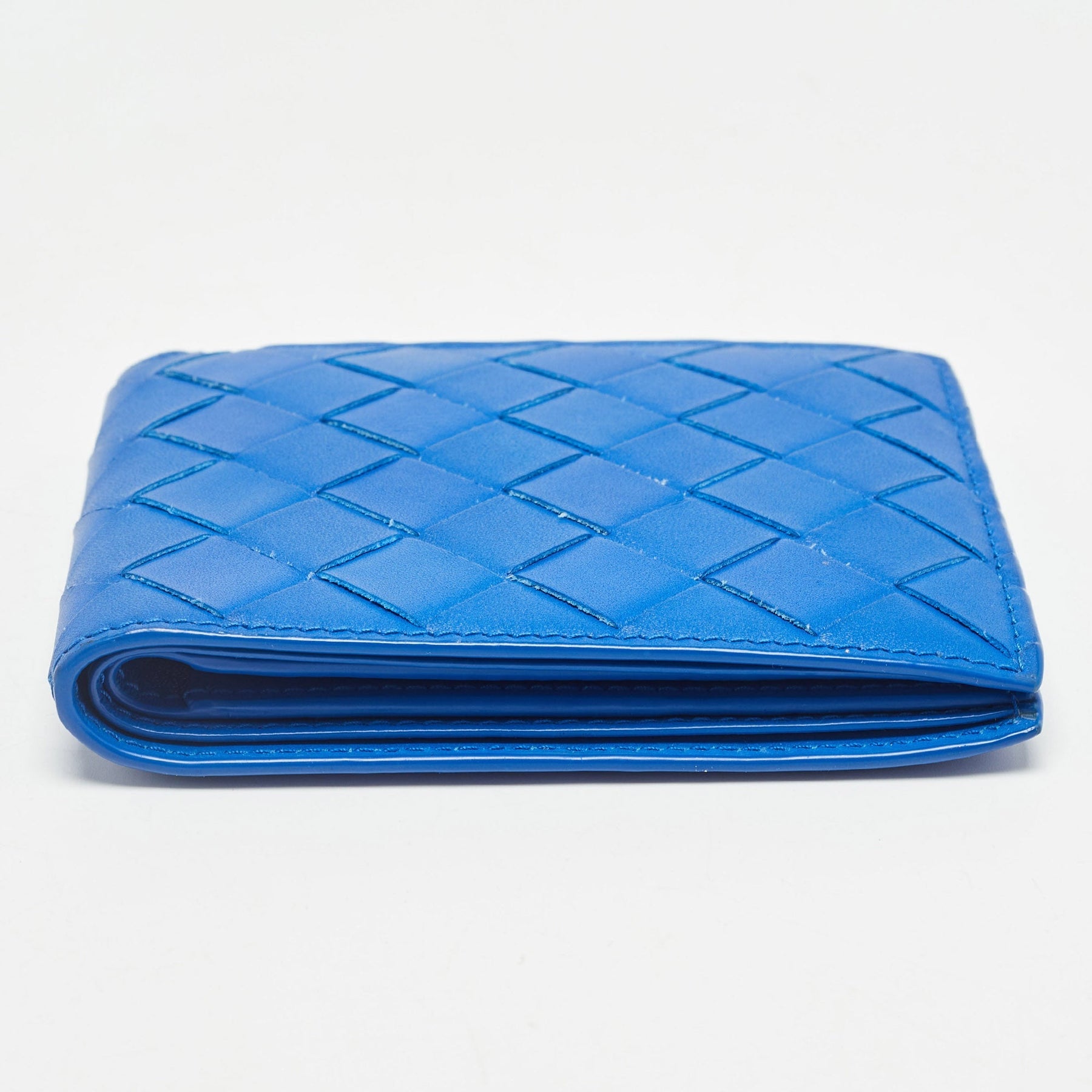 BOTTEGA VENETA Blue Intrecciato Leather Bifold Wallet
