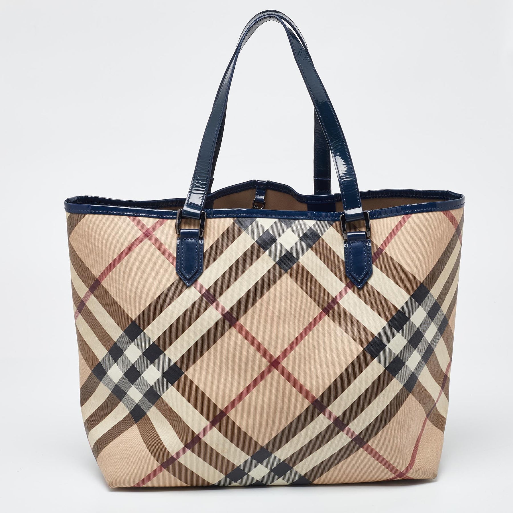 BURBERRY Beige/Blue Nova Check PVC and Patent Leather Shopper Tote
