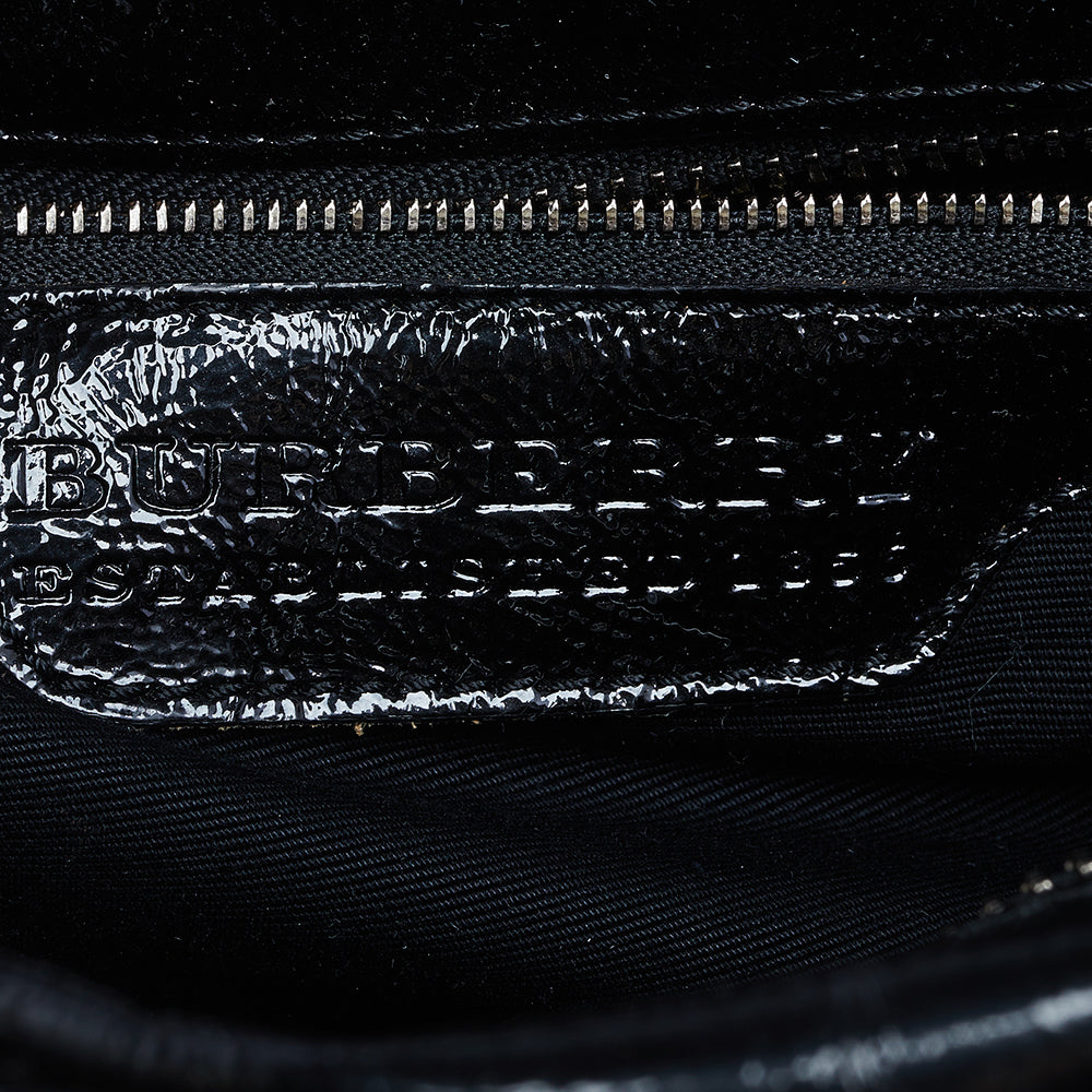 This Burberry Lowry is a harmonious fusion of New craftsmanship and timeless style Meticulously made from House Check PVC and patent leather the bag features a lovely ruffled exterior. The bag is equipped with protective metal feet at the bottom dual top handles and a canvas lined interior that will hold all your belongings. It is high in both appeal and design.
