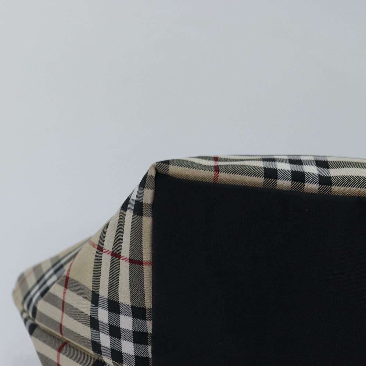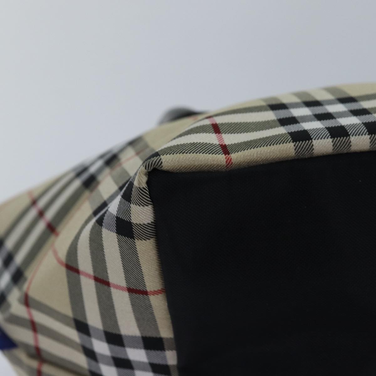 BURBERRY Nova Check Blue Label Hand Bag Nylon Beige Silver Auth mr449