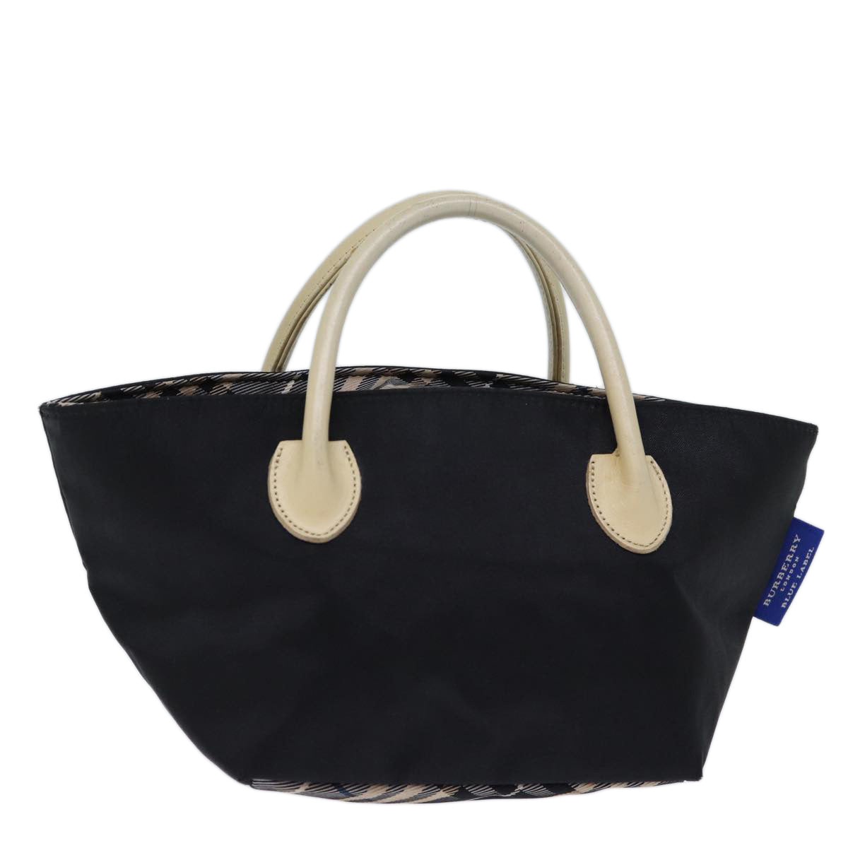BURBERRY Nova Check Blue Label Hand Bag Nylon Black Auth cl836