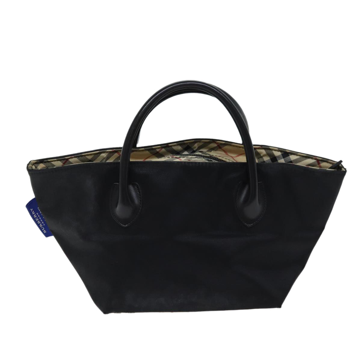 BURBERRY Nova Check Blue Label Hand Bag Nylon Black Beige Auth bs13576