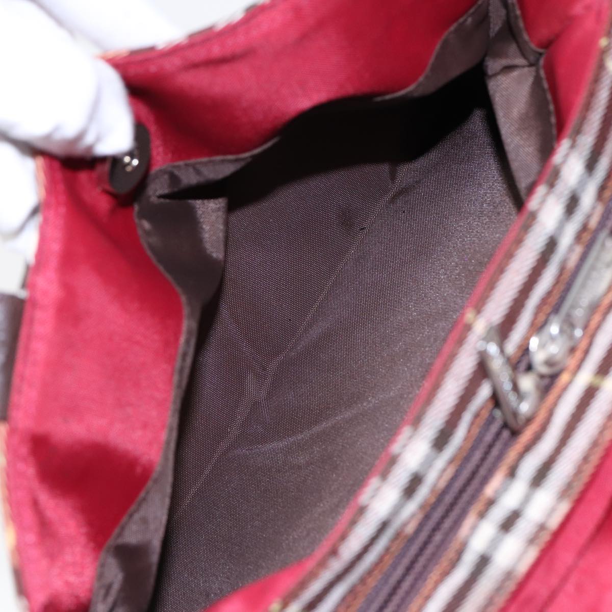BURBERRY Nova Check Blue Label Hand Bag Nylon Brown Auth ti2040