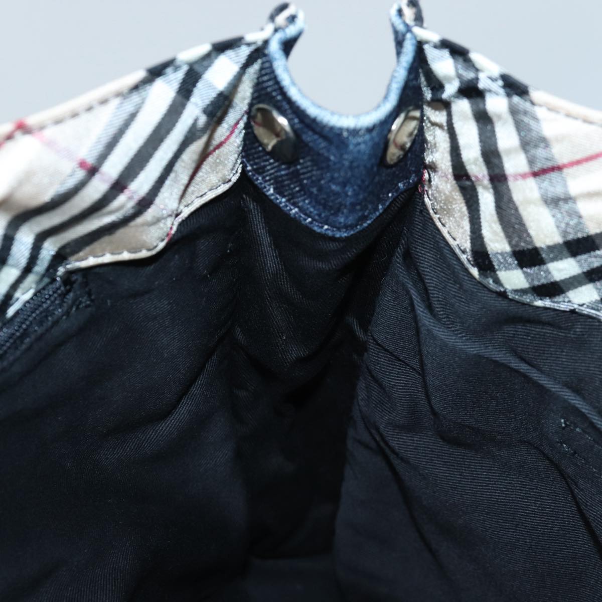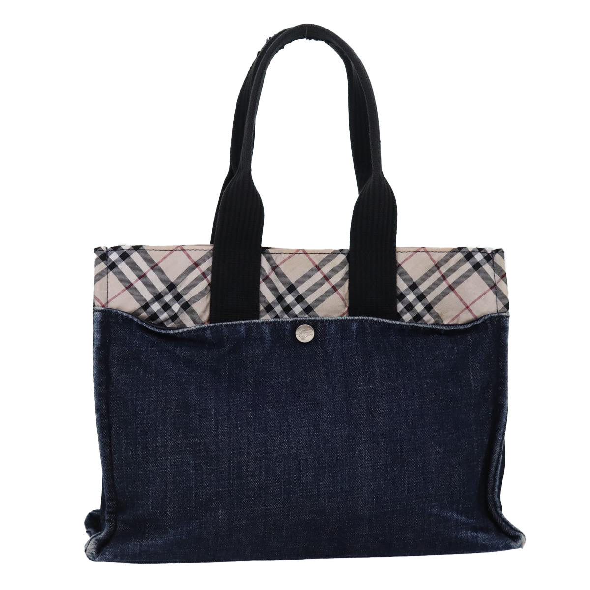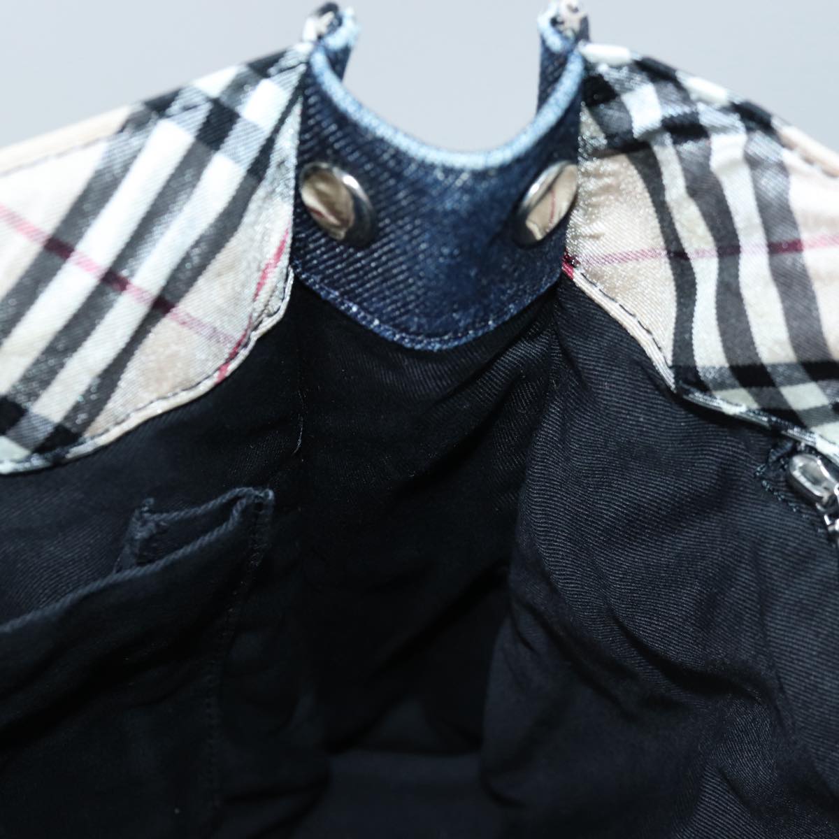 BURBERRY Nova Check Blue Label Tote Bag Denim Beige Navy Silver Auth bs16584