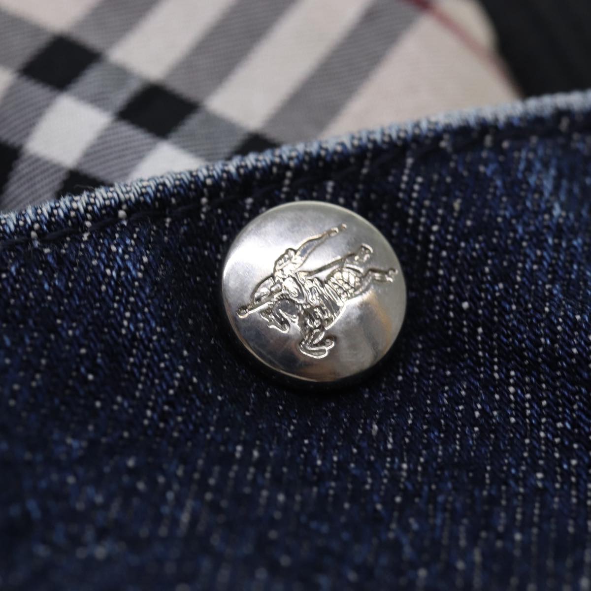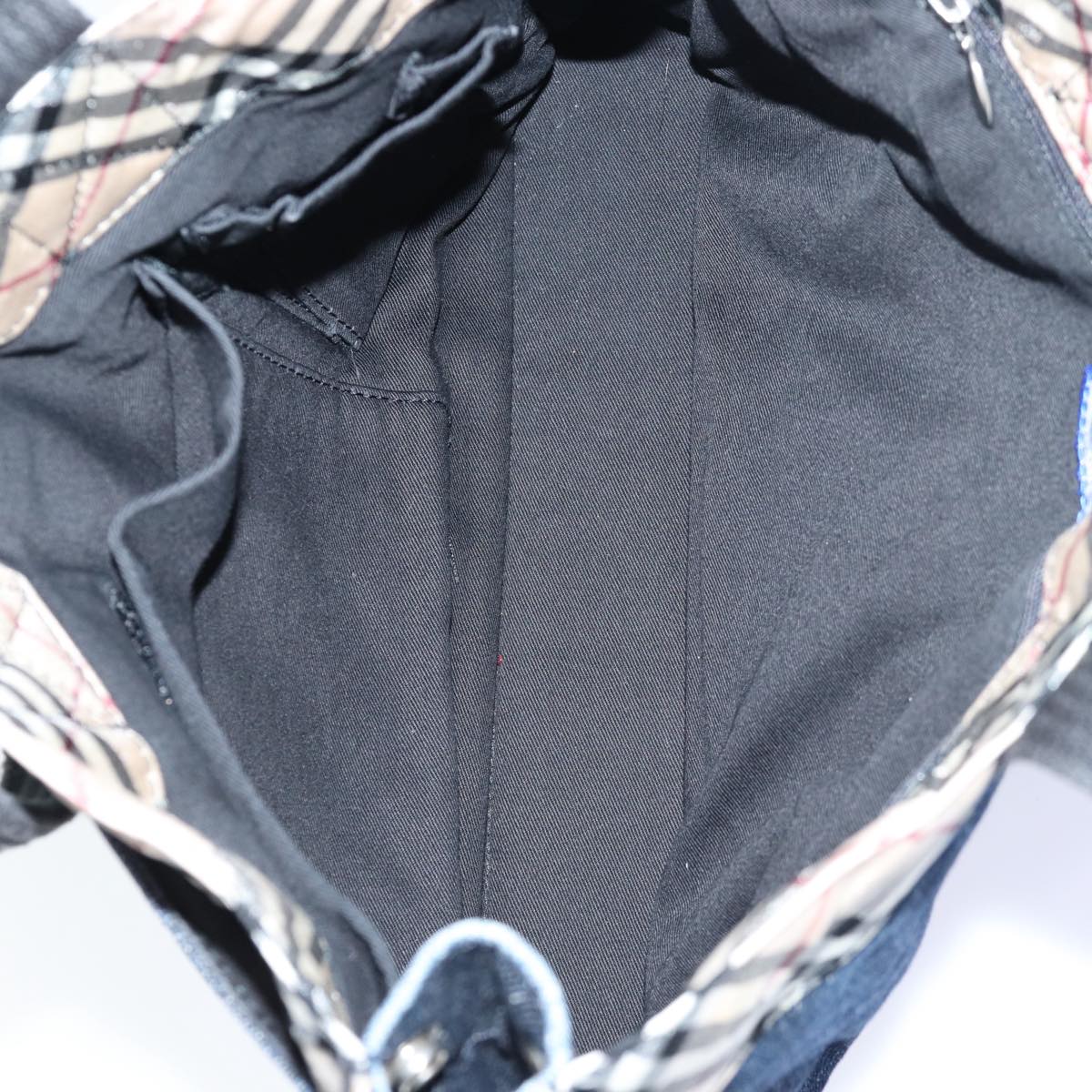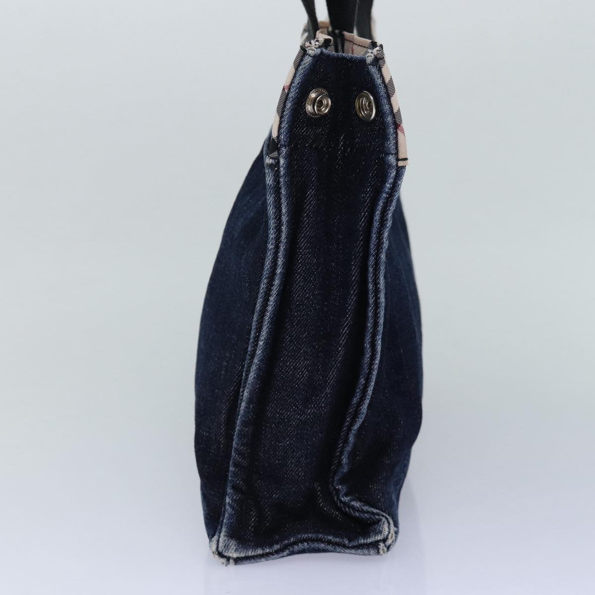 BURBERRY Nova Check Blue Label Tote Bag Denim Beige Navy Silver Auth bs16584