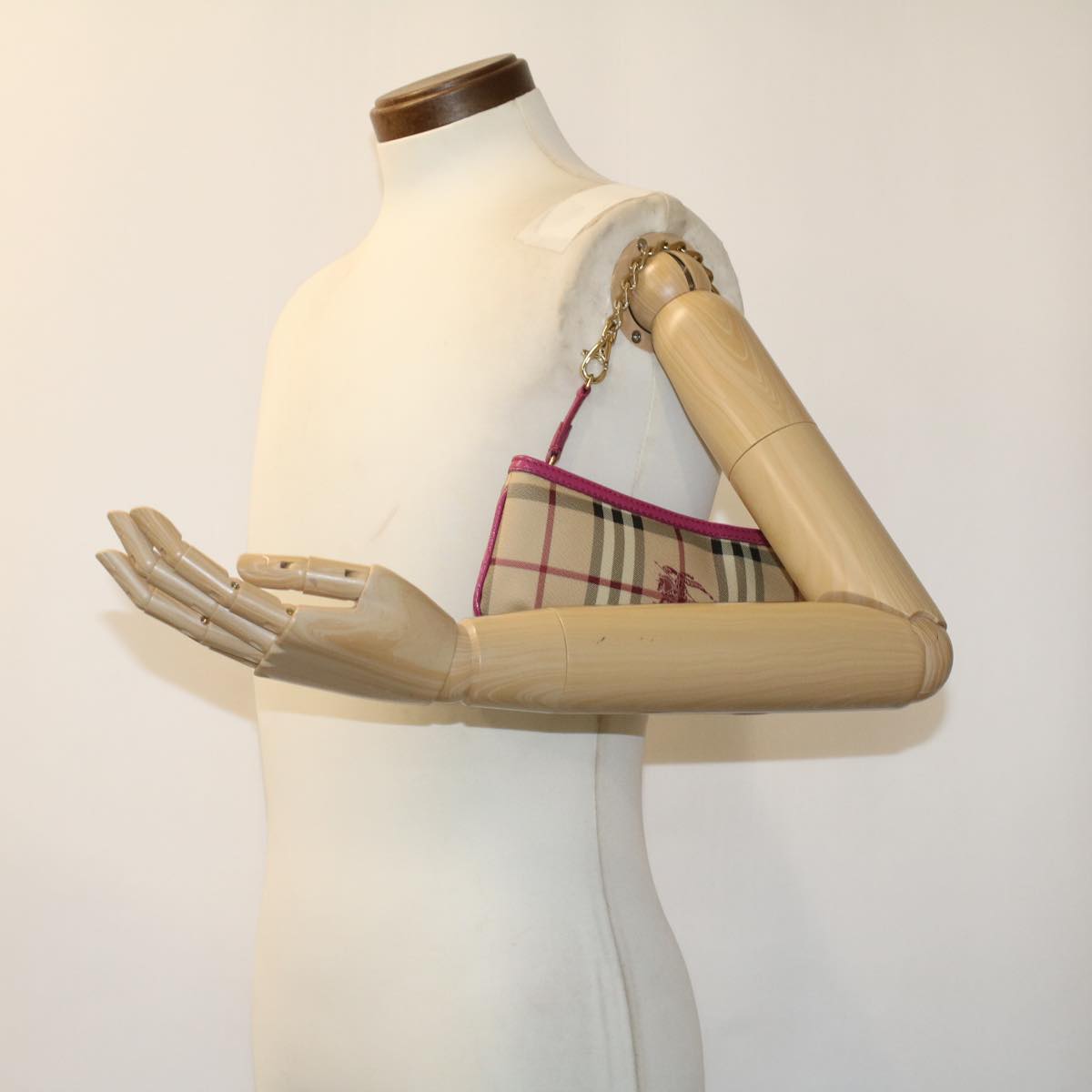 BURBERRY Nova Check Chain Accessory Pouch PVC Leather Beige Pink Auth yk5442