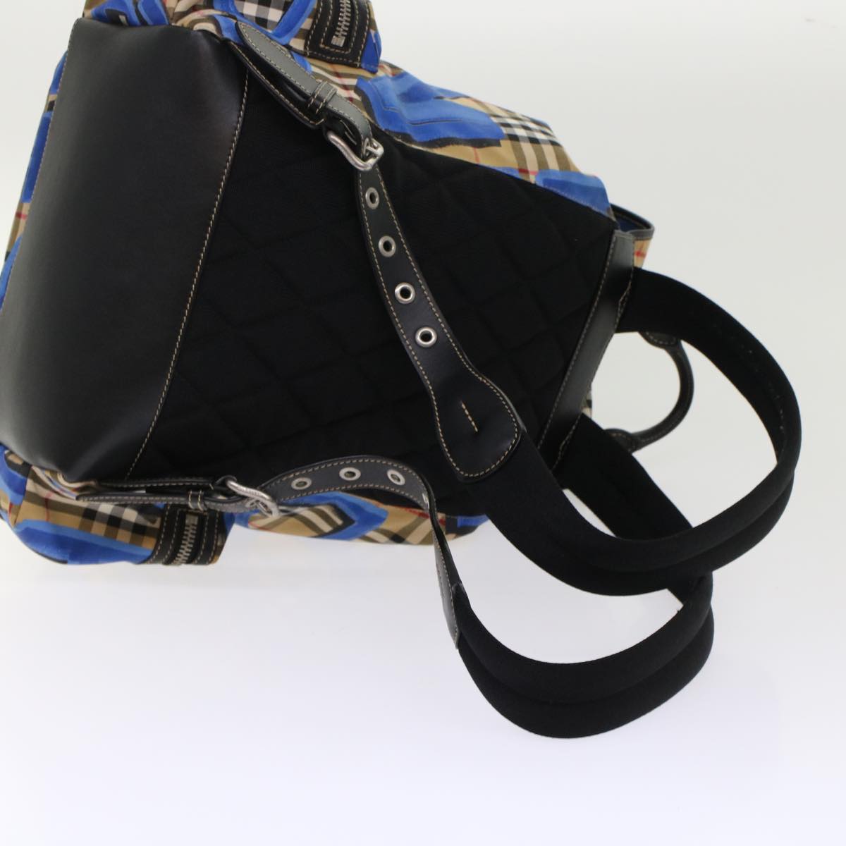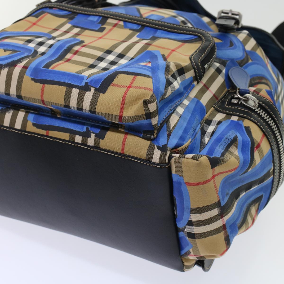 BURBERRY Nova Check Graffiti Backpack Canvas Leather Beige Blue Auth 49119A