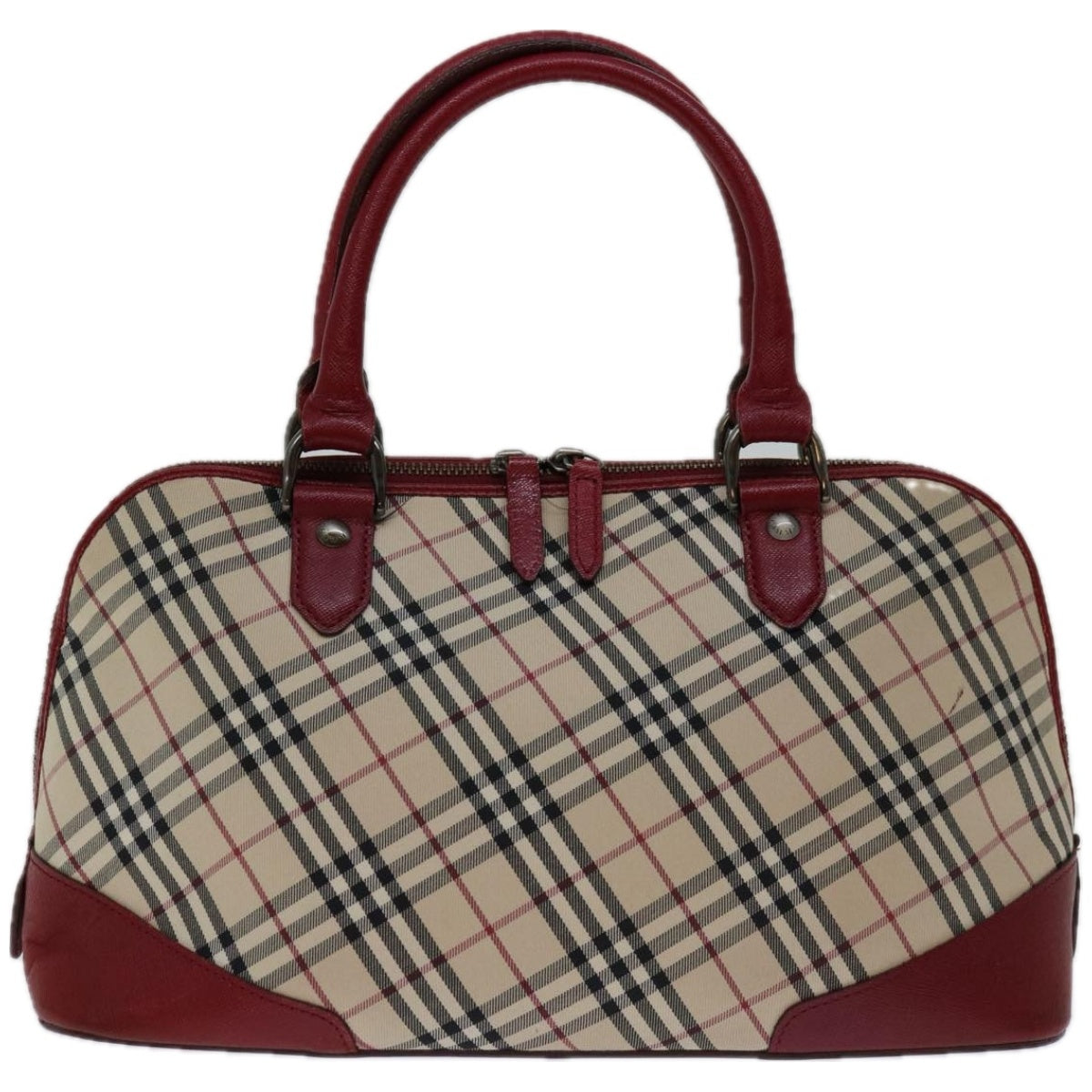 BURBERRY Nova Check Hand Bag Canvas Red Beige Auth bs12476