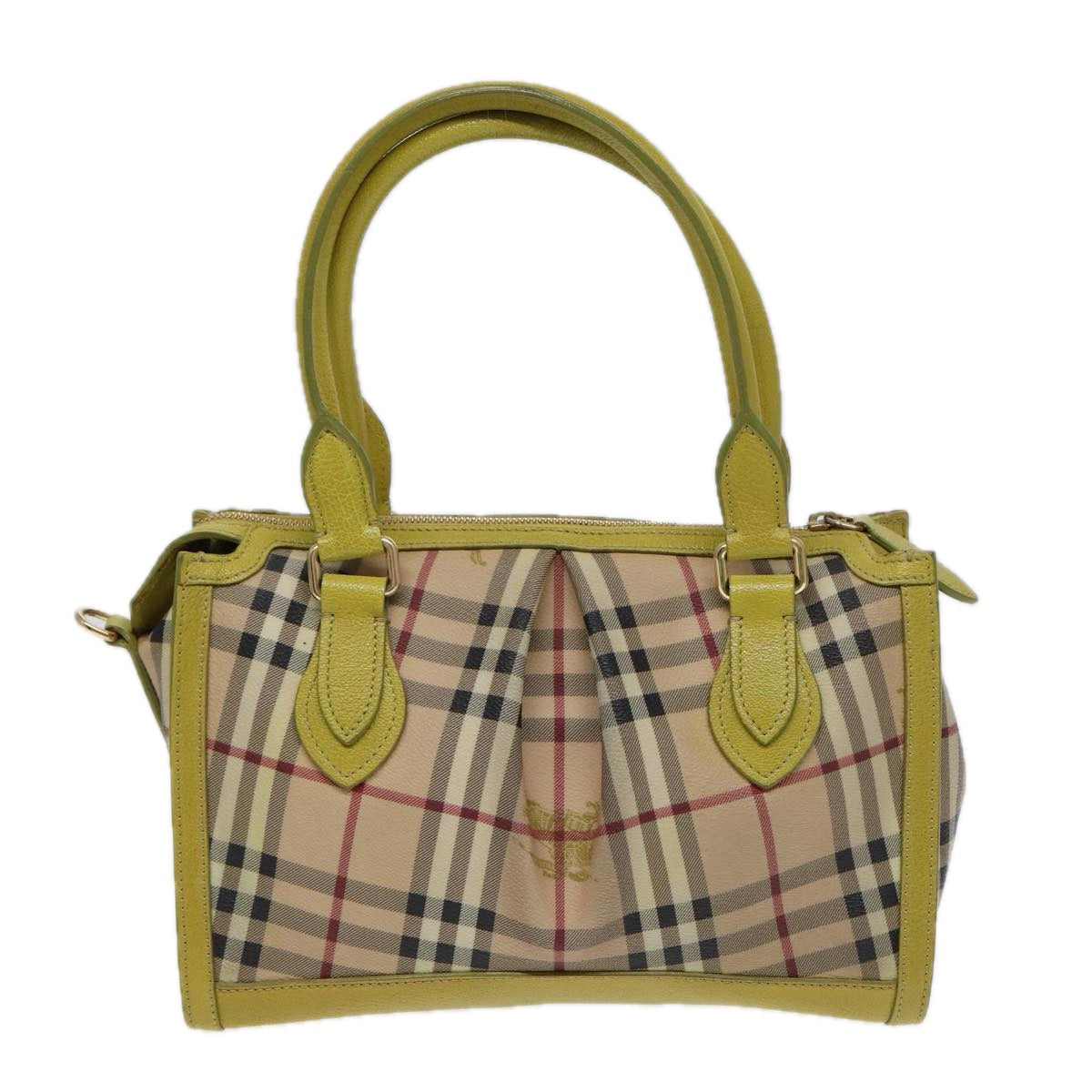 BURBERRY Nova Check Hand Bag PVC 2way Beige Gold Pistachio Yellow Auth 85745