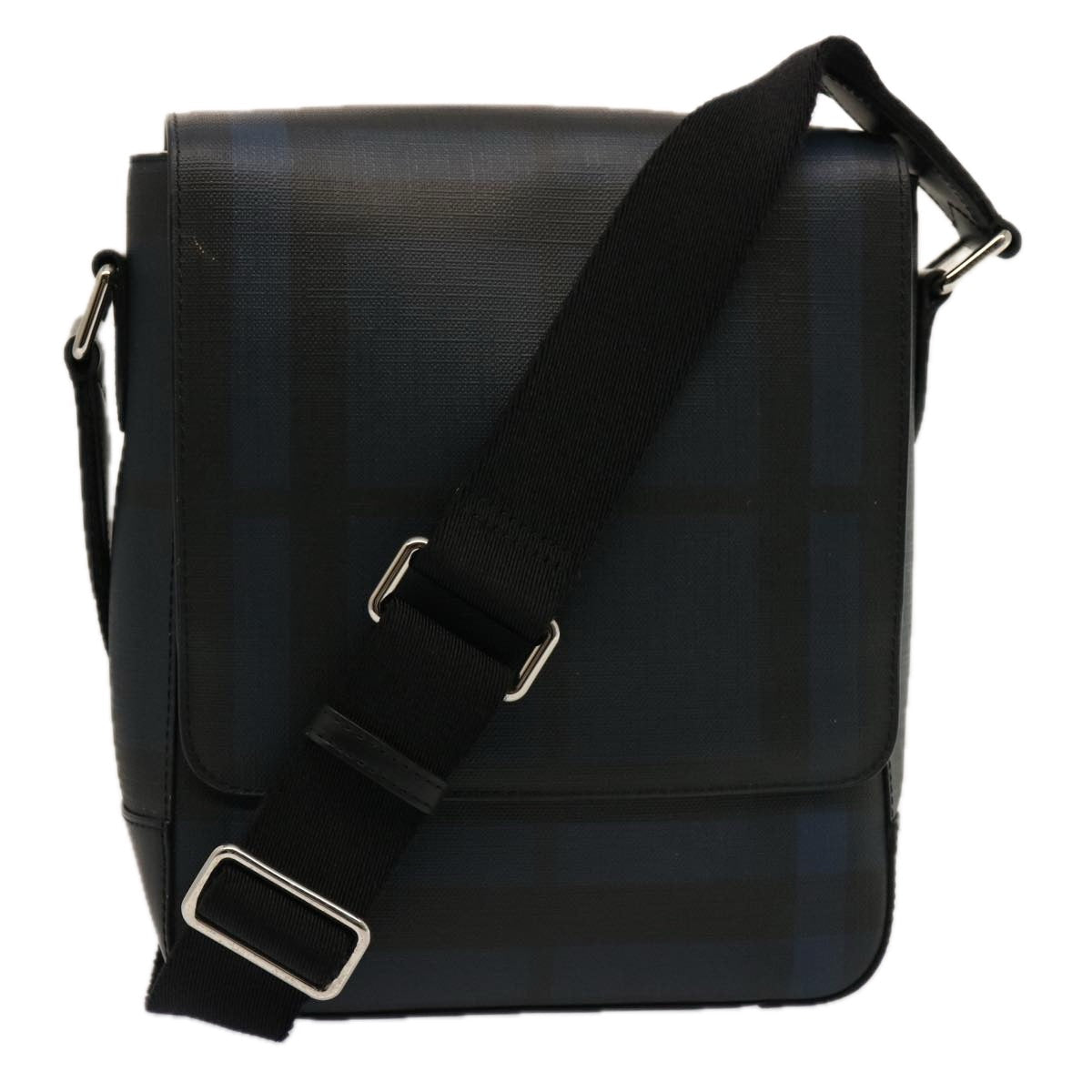 BURBERRY Nova Check Shoulder Bag Coated Canvas Navy Auth ep4321