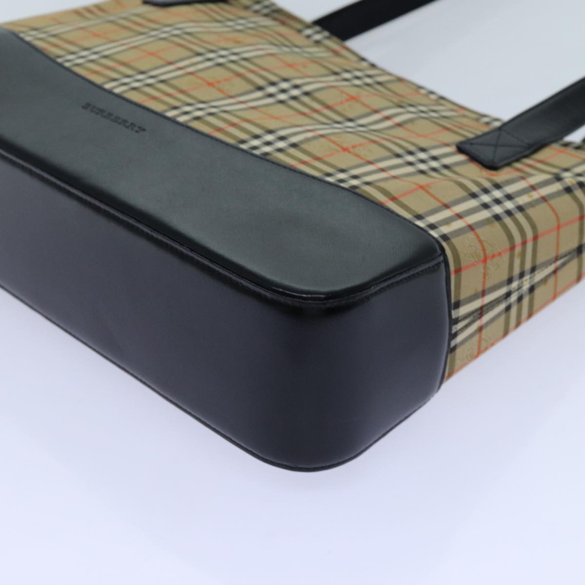 BURBERRY Nova Check Tote Bag Canvas Beige Black Auth 72354